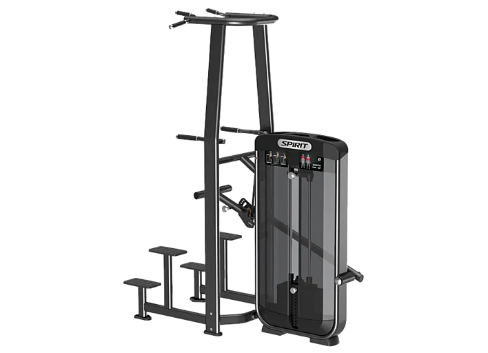 Профессиональное силовое оборудование Spirit SP-3517 предназначено для выполнения упражнений на брусьях, а также подтягиваний с возможностью управления весом отягощения. Подтягивания развивают широчайшие мышцы спины (плоские мышцы, которые лежат поверх разгибателей позвоночника). Во время упражнений на тренажере в баланс приходят мышцы-синергисты (бицепс, леватор лопатки, брахиалис, низ трапеций, большая и малая грудные мышцы и т. д.). Брусья позволяют тренировать трицепсы, плечи и грудные мышцы, а также нагружают брюшной пресс. В тренажере используется грузоблок-противовес для компенсации веса пользователя, выполняющего подъем и опускание. Есть несколько ступенек, которые позволяют безопасно начинать и заканчивать упражнения; рукоятки для опускания поворачиваются, подстраивая тренажер под ширину плеч. Упор для ног можно отвести в сторону, чтобы выполнить упражнения на тренировку мышц всего тела. Есть место для телефона и бутылки воды в верхней части конструкции.