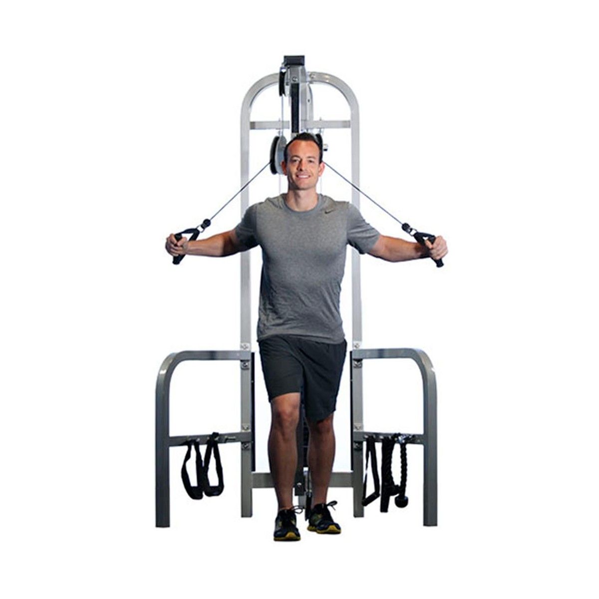 Под каждый стек установлены прочные резиновые бамперы. каждая плита имеет втулки с низким коэффициентом трения вокруг направляющих стержней: это помогает минимизировать износ, вибрацию и шум. Весовые стеки частично закрыты спереди, чтобы обеспечить легкий доступ для обслуживания и смазки. Для безопасности все весовые стеки полностью закрыты с обратной стороны.
