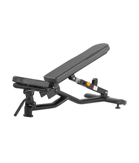 Регулируемая скамья с профилем основной станины 60*120*2.5 мм. для полноценного коммерческого использования. Сидение регулируется в диапазоне от -30 до 0 градусов, спинка сидения - от 0 до 90 градусов. Размер сидения - 90*26 см, размер спинки - 38*26 см, толщина в обоих случаях составляет 6 см.