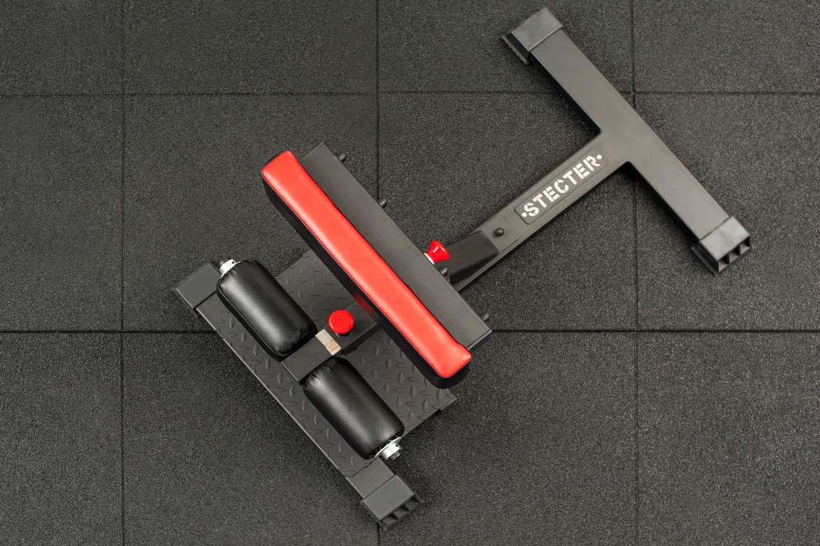 Поставка для приседаний STECTER позволяет зафиксировать положение ног для выполнения приседаний. Конструкция разработана таким образом, что позволяет регулировать положение валиков для ступней и положение подушки под голени независимо друг от друга с шагом в 15 мм. Высота подушки для голени регулируется в диапазоне от 405-570 мм. Платформа для ног выполнена из рифленого листа, который так же способствует лучшему сцеплению с подошвой кроссовок. Для амортизации и улучшенного контакта с полом на основании подставки для приседа установлены резиновые подпятники.