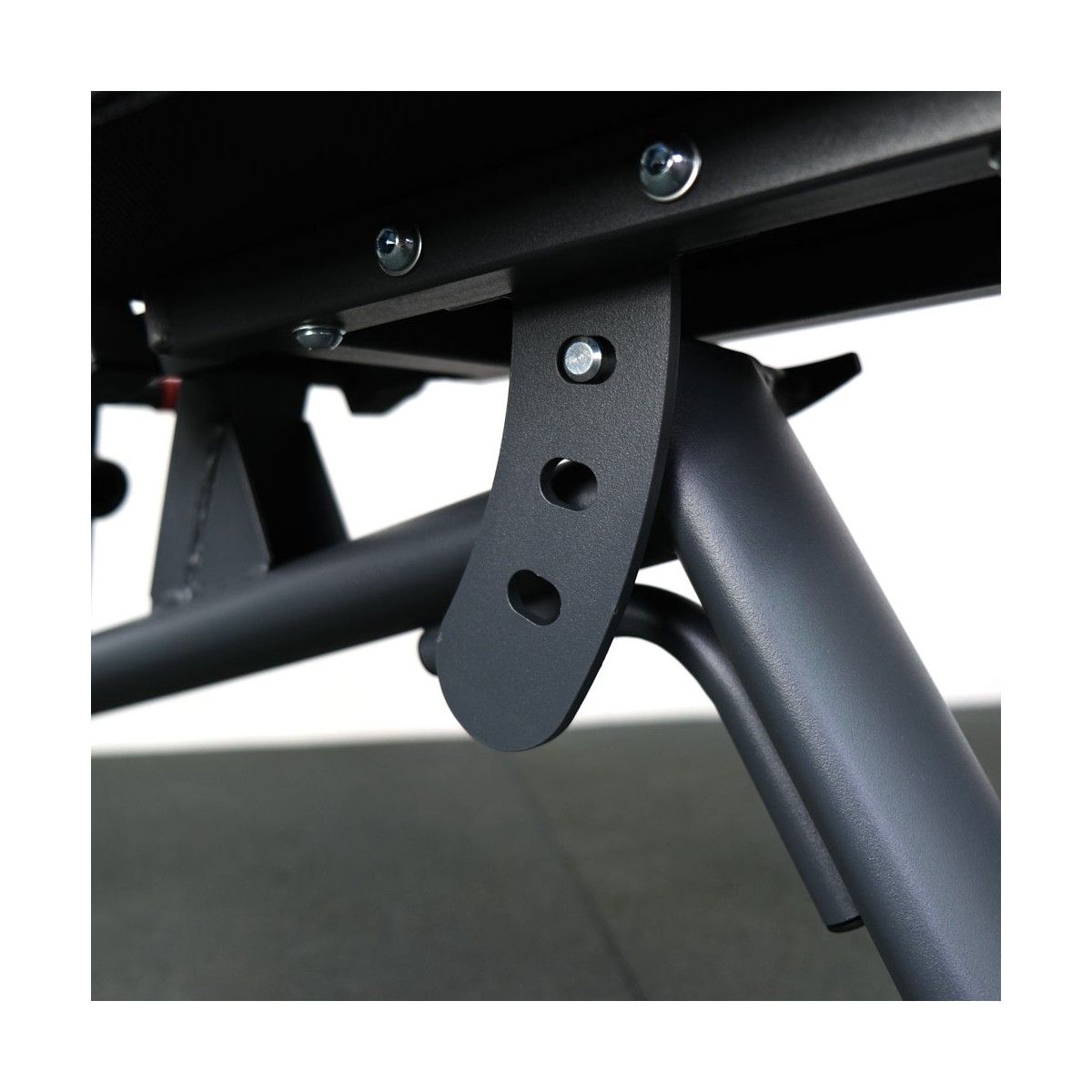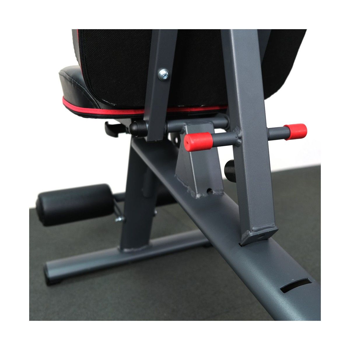 Спинка скамьи регулируется в 6 разных положениях: от отрицательного до положительного угла. При отрицательном наклоне, можно проработать мышцы пресса.