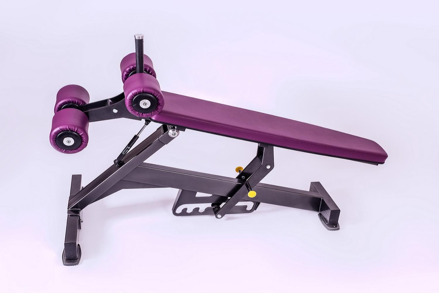 Скамья с многопозиционной регулировкой предназначена для тренировки пресса с использованием собственного веса либо отягощения. Выполняемое упражнение – подъем торса