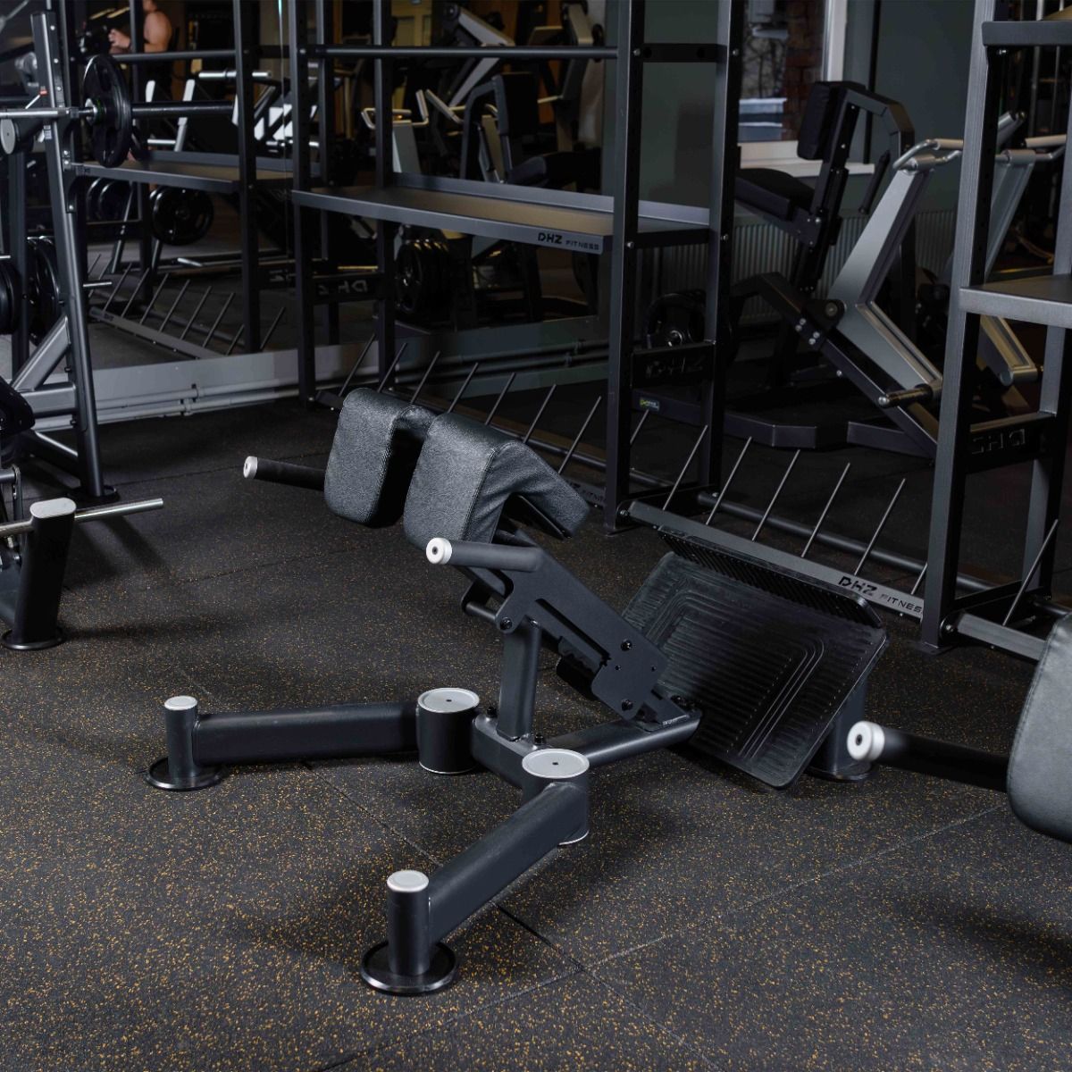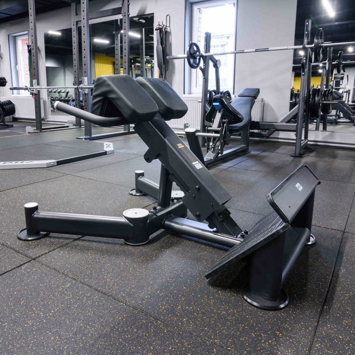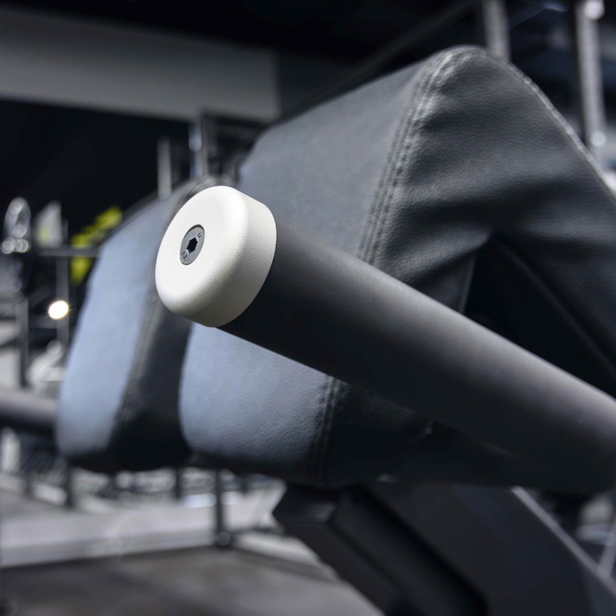 Нескользящие прочные рукоятки из металлической трубы с резиновым покрытием и декоративными заглушками-наконечниками, зафиксированные болтом, расположены по обе стороны подушек для надежной фиксации тела атлета во время тренировки.