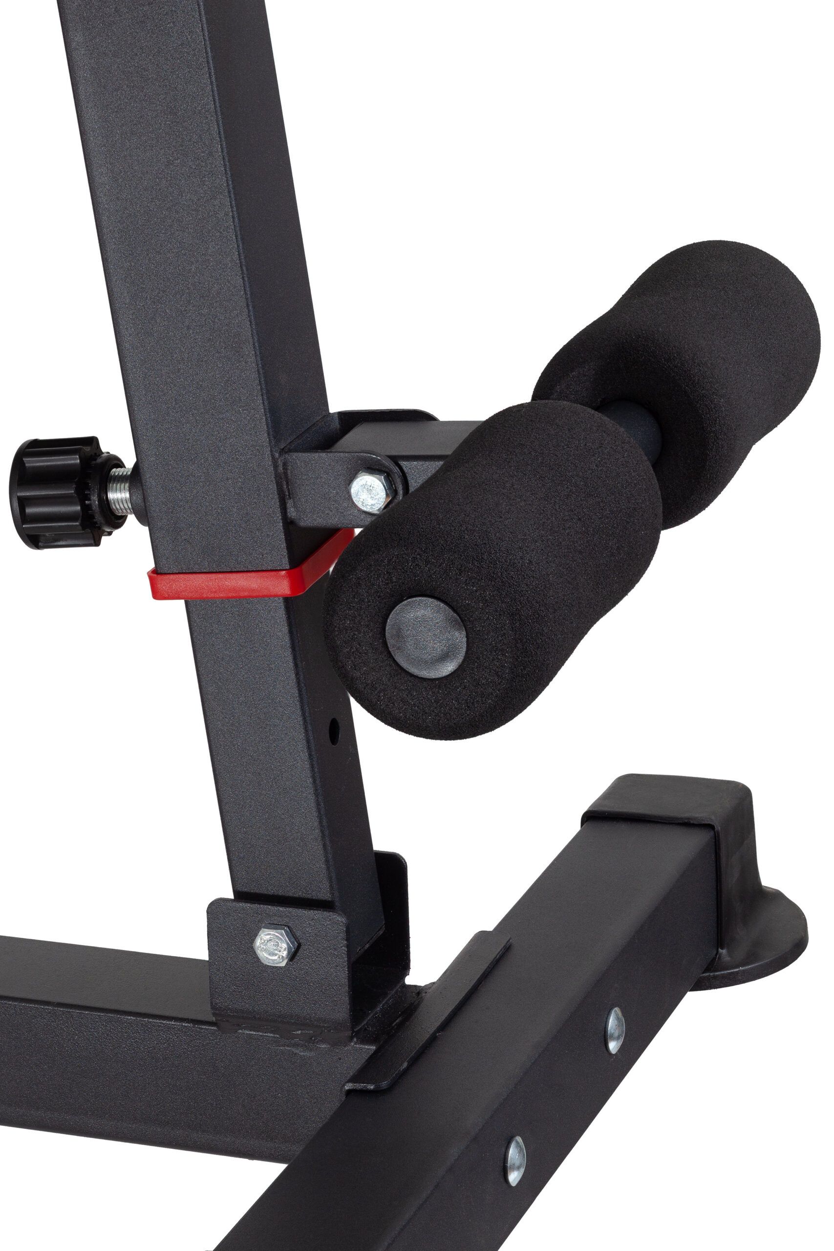 Силовая скамья VictoryFit VF-T22 предназначена для силовых тренировок, в частности для жима штанги или гантелей. В скамье предусмотрено изменение угла наклона спинки от 0 до 90 градусов, всего 11 положений, также изменяется угол наклона сиденья в трех положениях, от 0-45 градусов. Ширина скамьи 46 см обеспечивает устойчивость конструкции. Прорезиненные заглушки не позволят скамье скользить по полу и портить его поверхность. Профиль стальной рамы 50х50 мм, толщиной 1.5 мм обеспечивает прочность скамьи для совокупной нагрузки 250 кг (вес пользователя + вес груза). Валики для ног помогут для тренировки на мышцы брюшного пресса.
