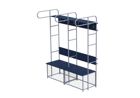 В ящике, крышка которого служит игроку сидением, уместится хоккейный баул. На гардеробных крючках можно разместить одежду, а на верхних полках - хоккейные и личные аксессуары.