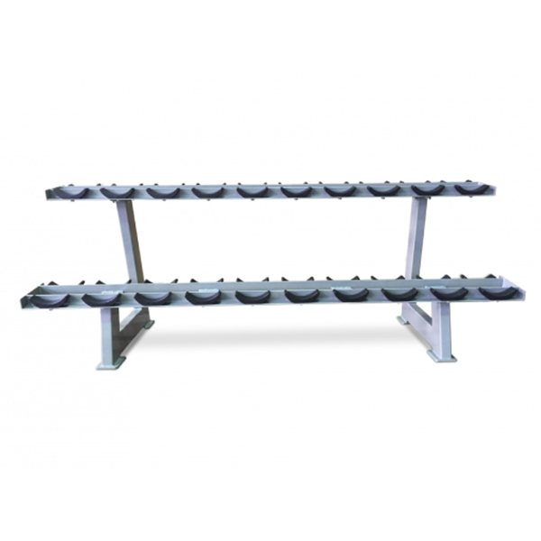 Стойка для круглых гантелей на 10 пар Smith Strength обеспечит компактное хранение спортивного инвентаря в фитнес клубе. Простая и надежная конструкция фиксирует гантели на своем месте, двухслойное покрытие обеспечивает эстетичный вид и длительную эксплуатацию, дополнительные резиновые накладки на ножки гарантируют сохранность напольного покрытия.
