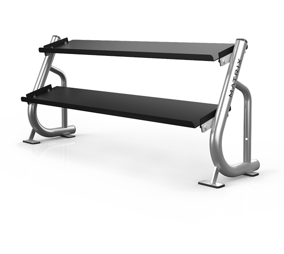 MATRIX MAGNUM A697 - ультрапрофессиональная подставка под гантели - 2-ух ярусная, плоская, длиной 1.8 метра. Подходит для шестигранных гантелей в следующих комплектациях: a) 2.3 - 22.7 кг. либо б) 24.9 - 45.4 кг. Рама окрашена в два слоя и покрыта лаком.
