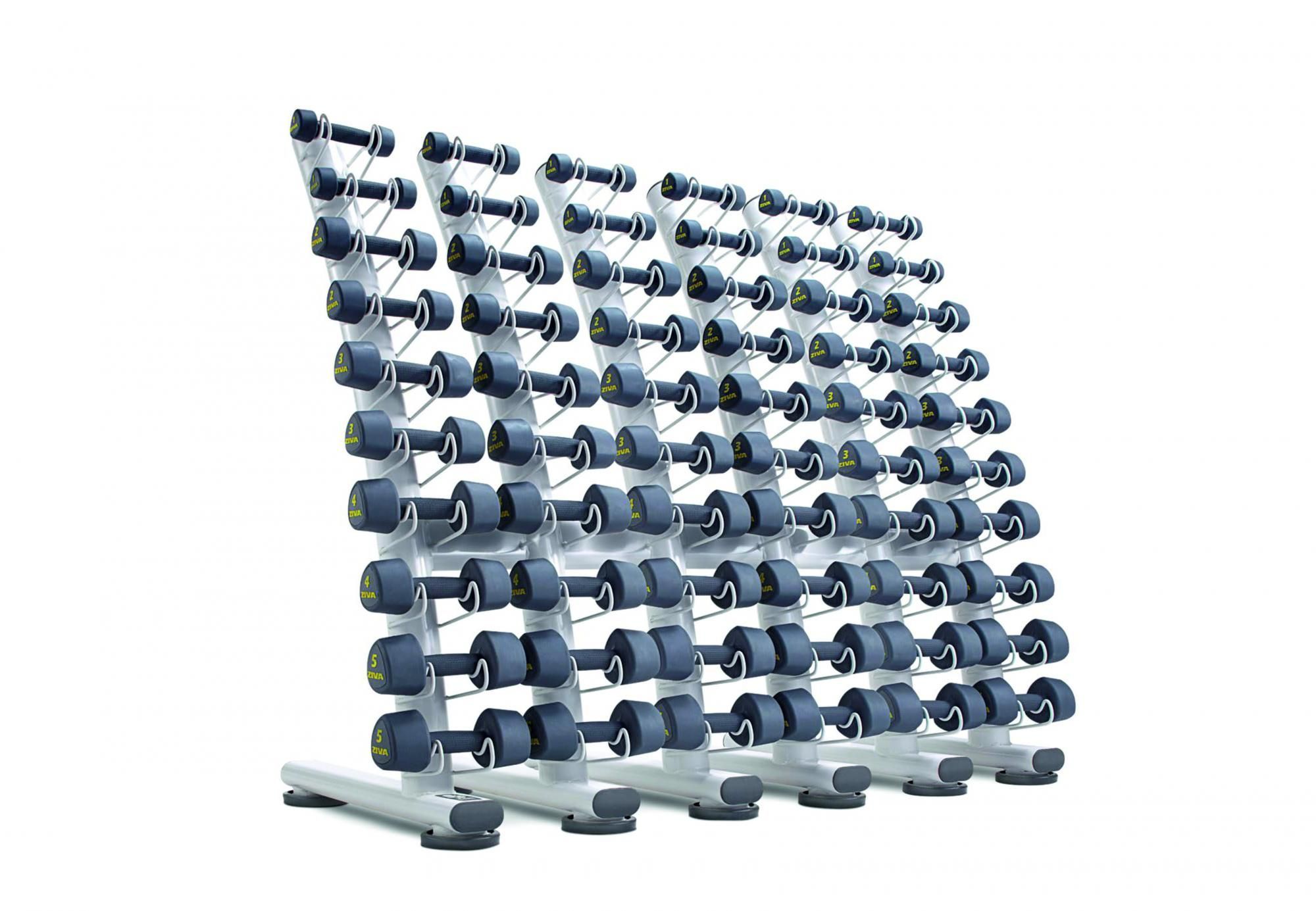 - Вмещает от 1 до 10 кг гантелей (30 пар)