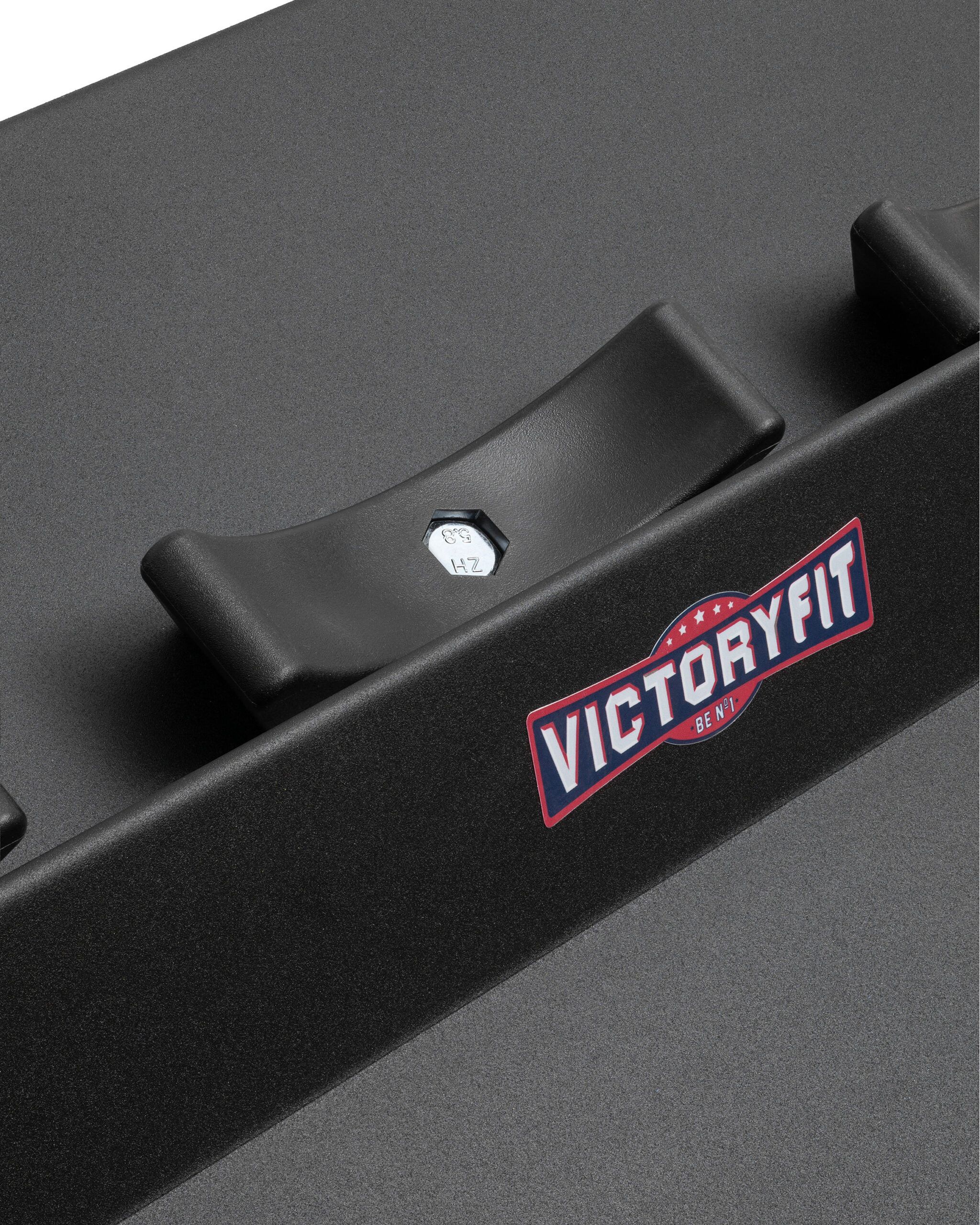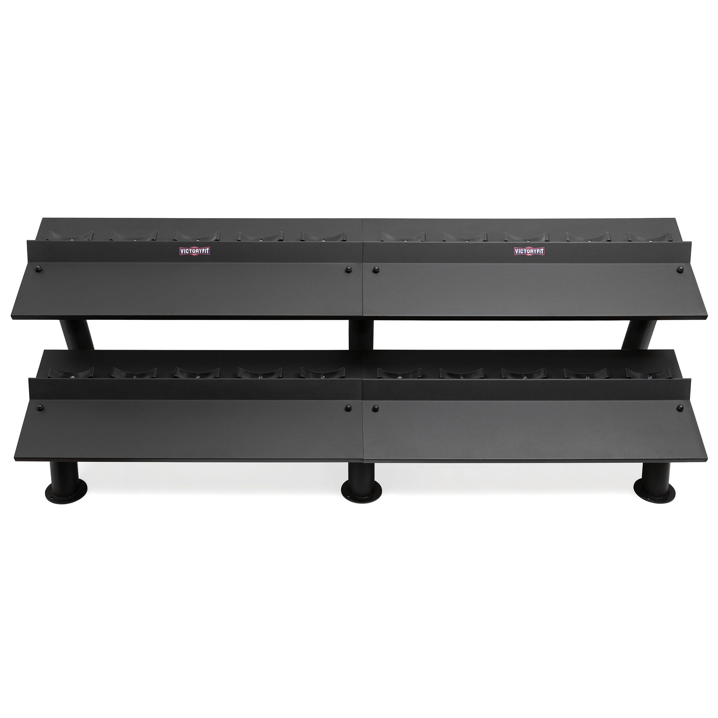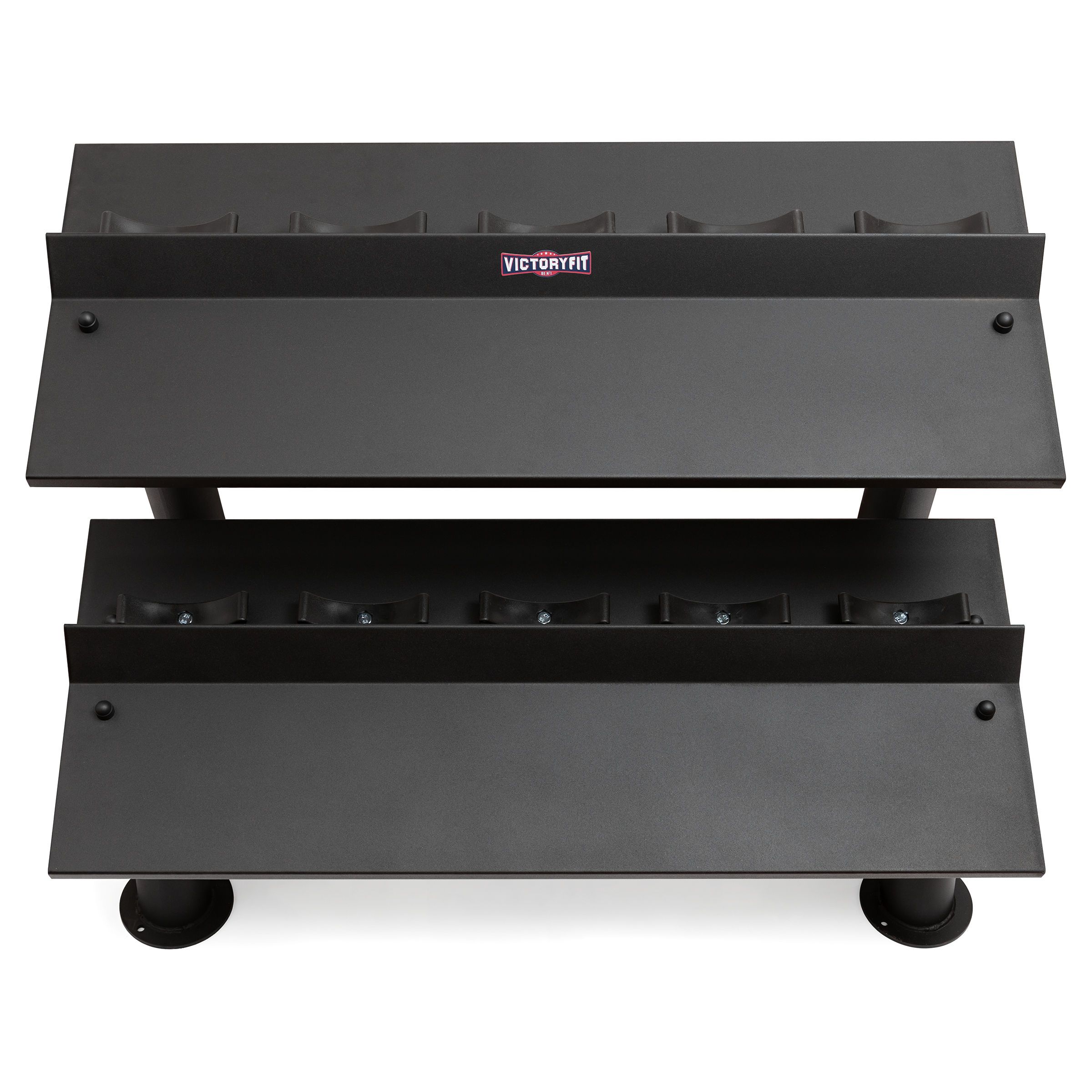 Стойка для гантелей VictoryFit VF-T400. Изготовлена из стали СТ3. Предназначена для размещения 5 пар гантелей. Индивидуальный ложемент для каждой гантели. В конструкции предусмотрено крепление к полу. При необходимости, ширина стойки может быть увеличена за счет дополнительных секций VictoyFit VF-T410. По желанию, цвет стойки может быть изменен.
