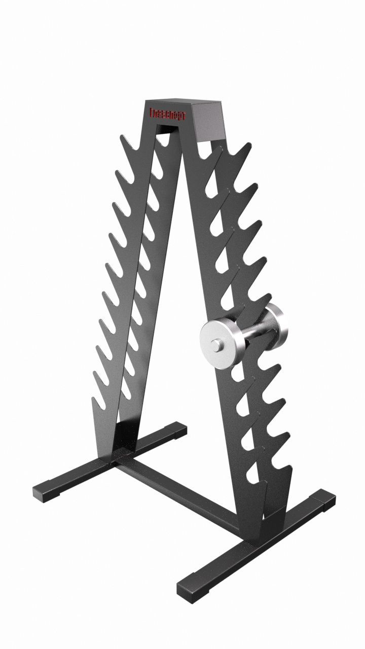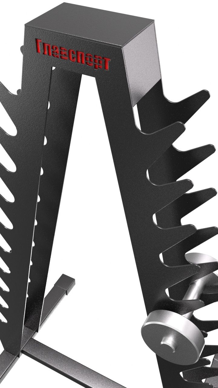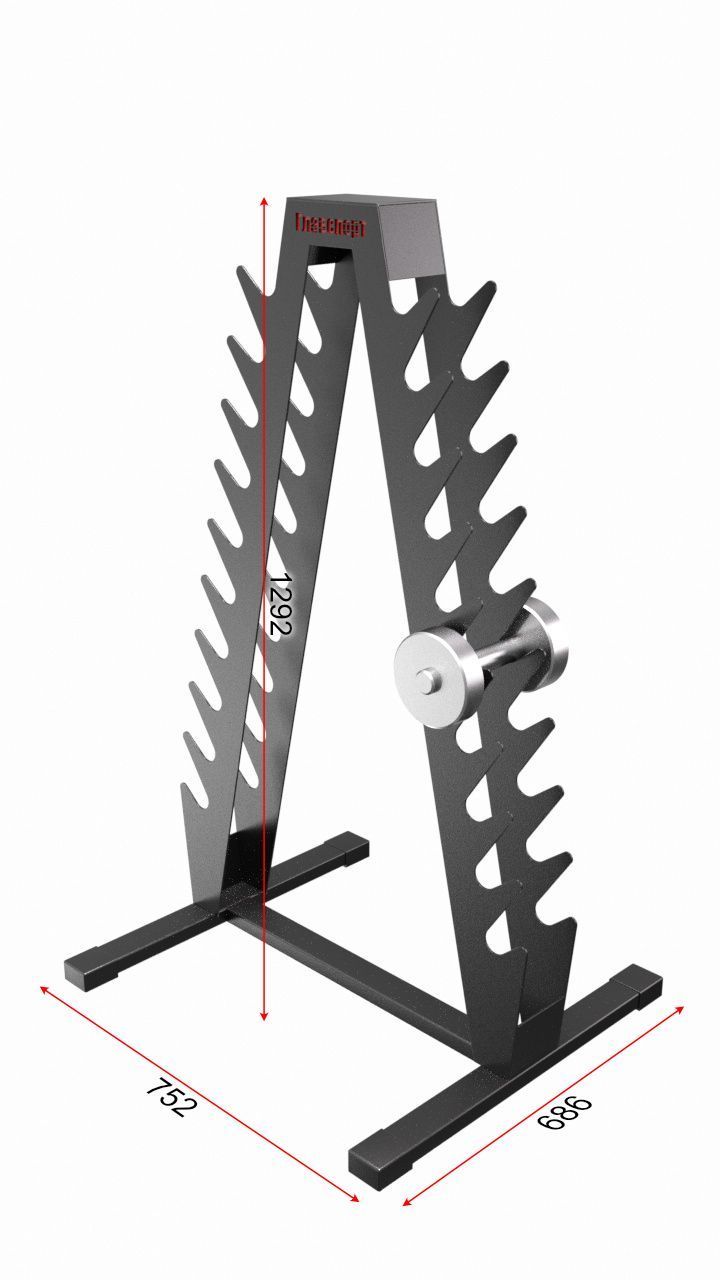 Предназначена для хранения профессиональных гантелей разных весов. Цельносварная металлическая конструкция из профиля 60х30х2 мм и металлических пластин(гребенок) толщиной 3 мм.