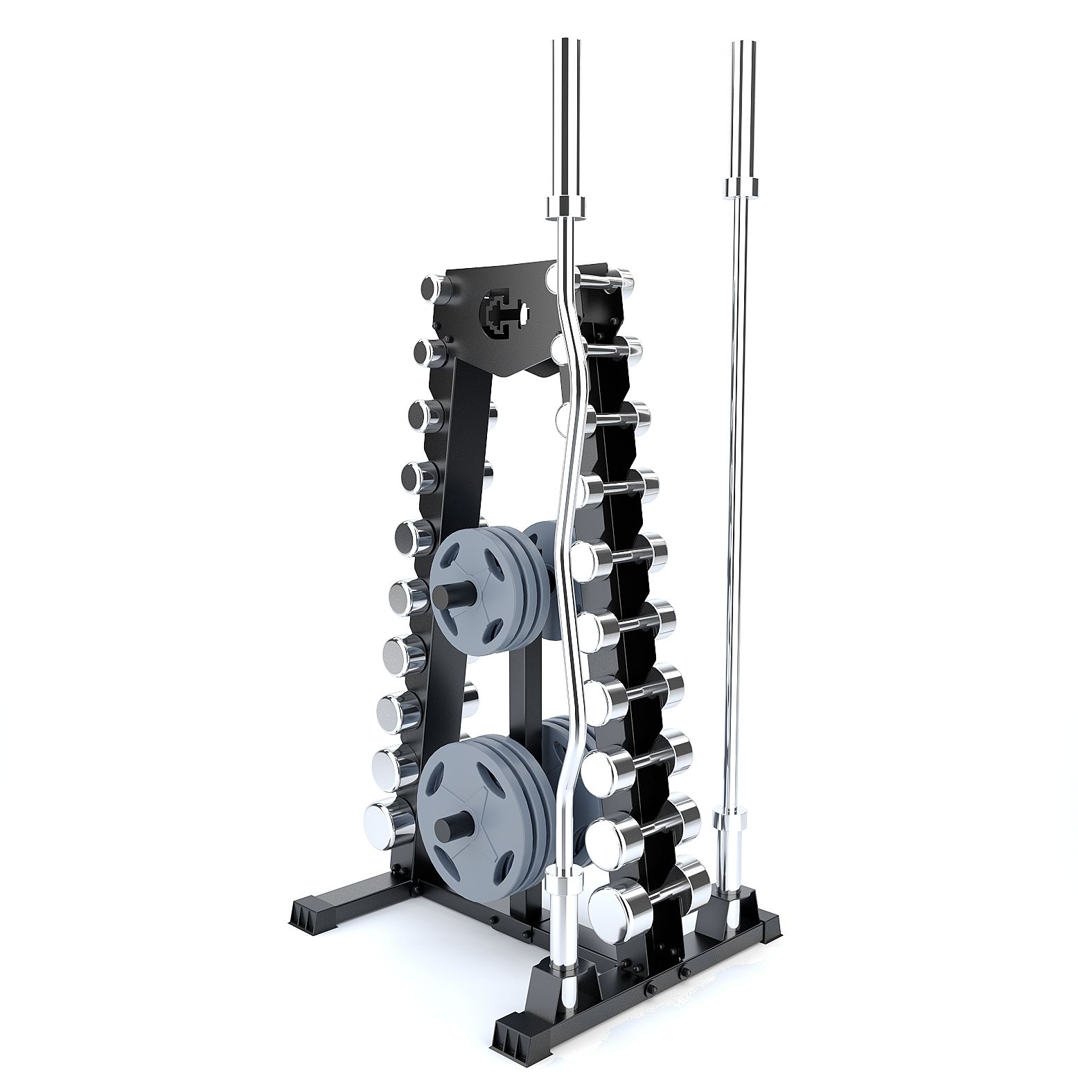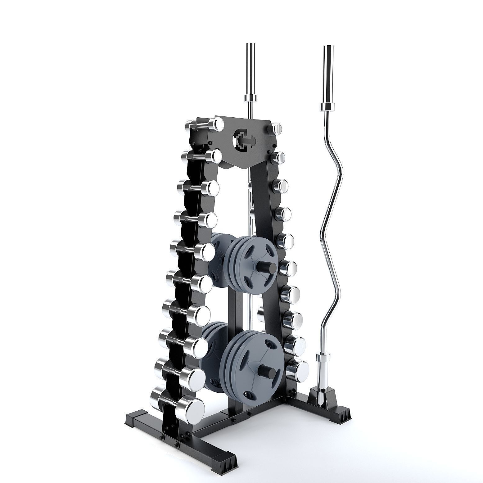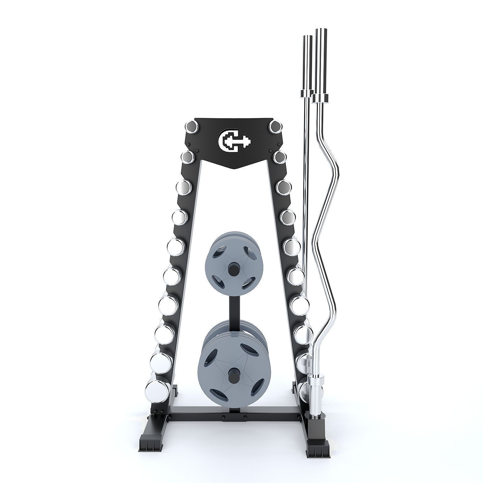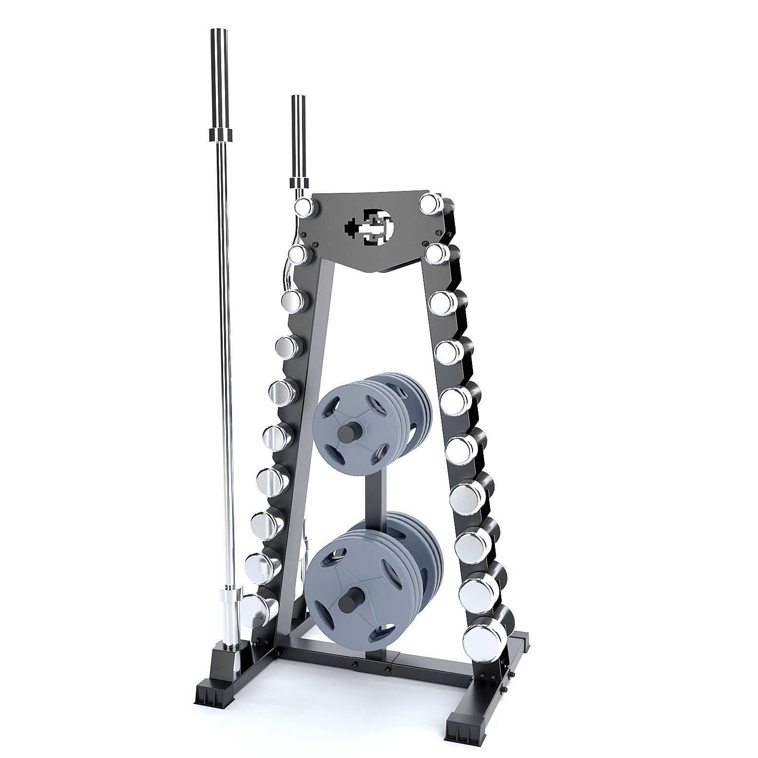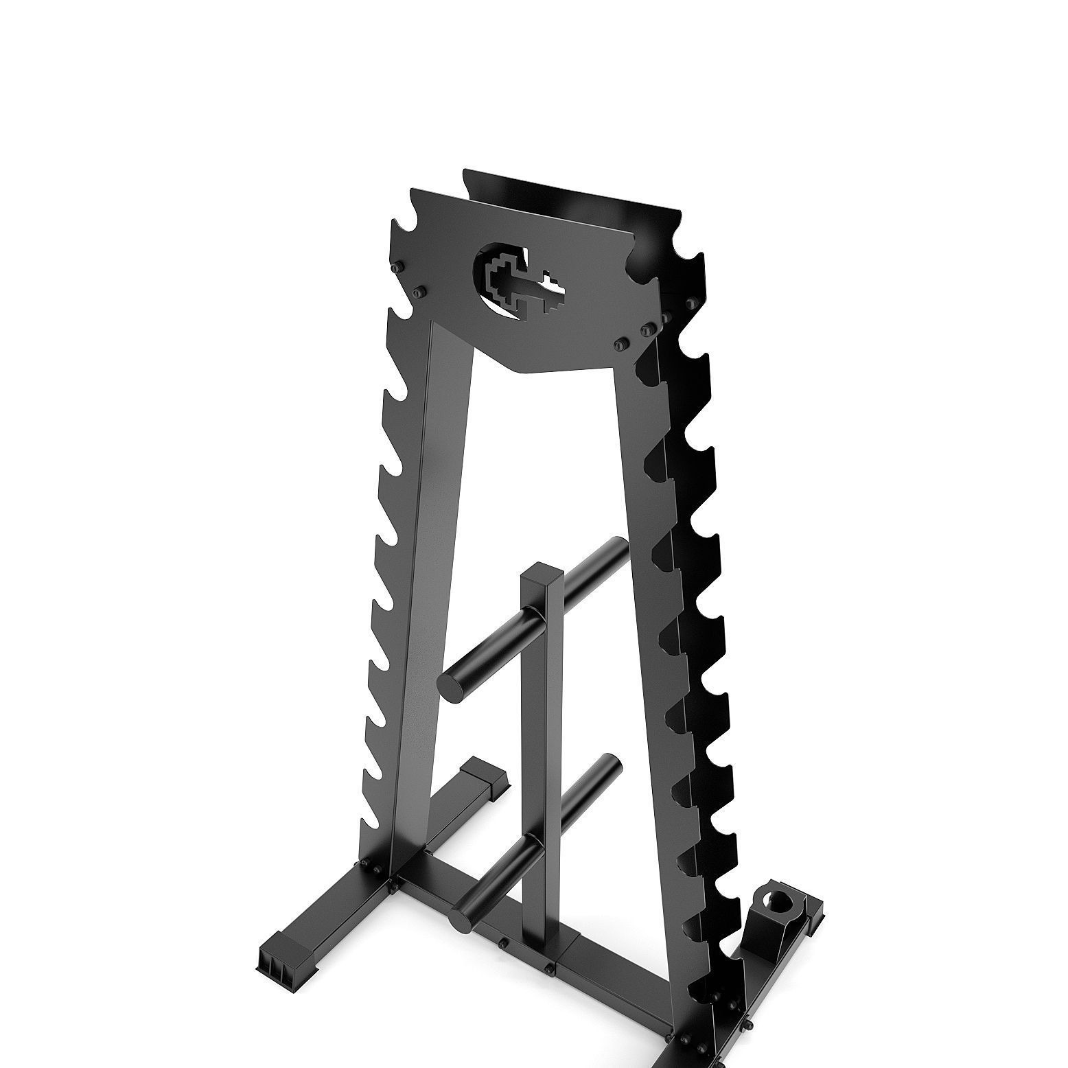 Стойка рассчитана на 10 пар гантелей. Ширина полки для гантелей 11 сантиметров (ширина рукоятки ваших гантелей должна быть не менее 11сантиметров). Допустимый суммарный вес гантелей не должен превышать 250 килограмм.