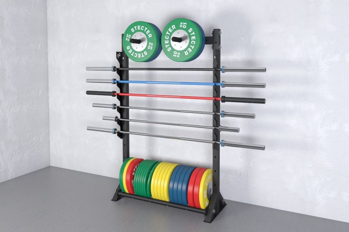 Купить модульный стеллаж для хранения грифов и дисков штанги Вы можете в нашем магазине. Разборная конструкция занимает мало места, тем самым вы экономите на его доставке