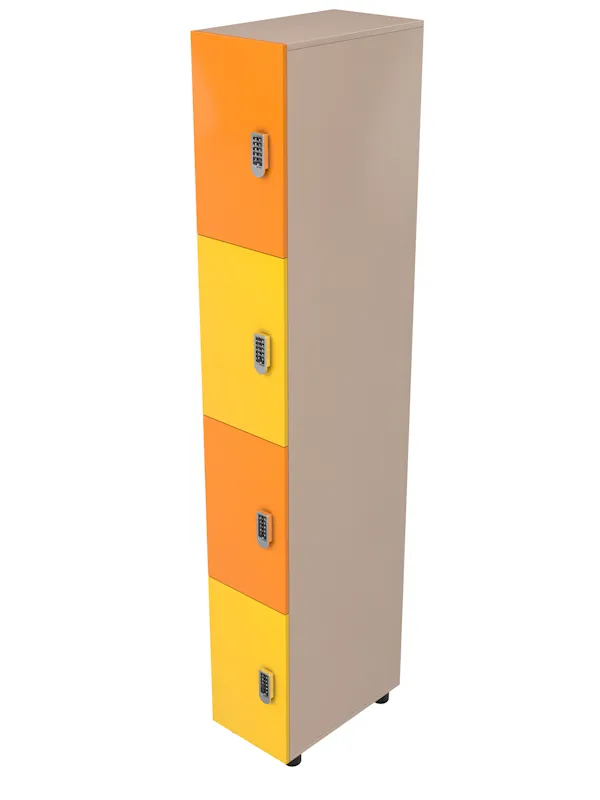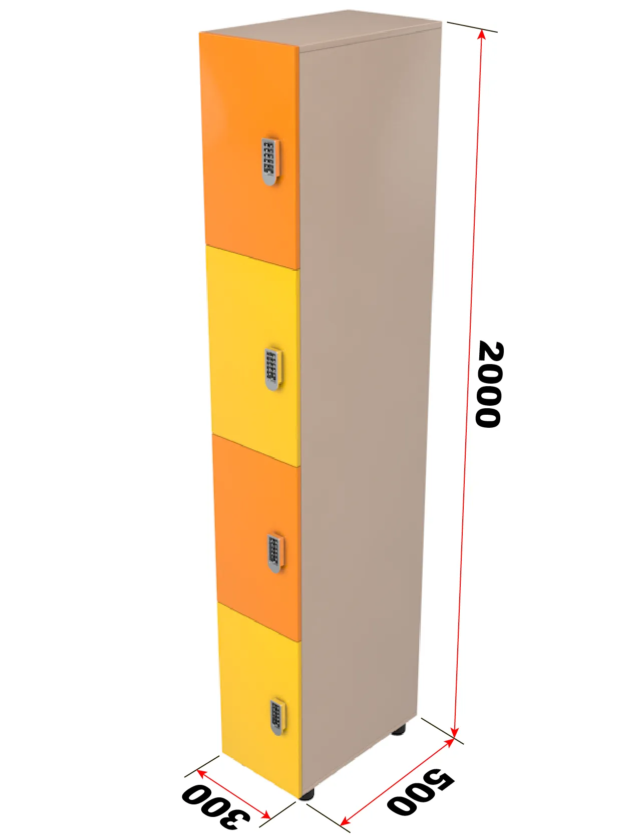 Шкаф - из ДСП c покрытием HPL ((high pressure laminates — ламинат высокого давления), обладает повышенной влагонепроницаемостью (можно мыть струей воды любой темперытуры, с любыми моющими средствами), имеет привлекательный внешний вид благодаря ярким цветам.