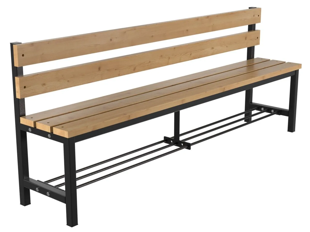 Скамейка для раздевалки со спинкой разборная с полкой для обуви.Устанавливается в школах, спортивных комплексах, фитнес центрах.