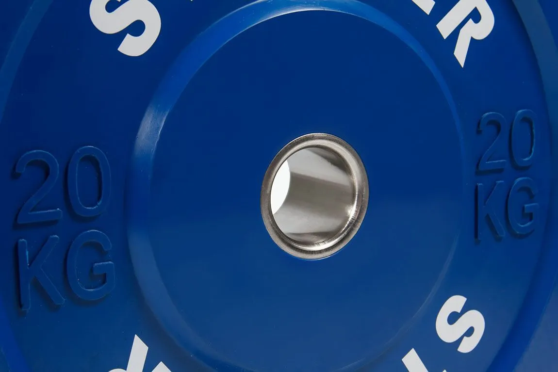 Блины окрашены в разные цвета для облегчения идентификации в соответствии с олимпийскими стандартами.