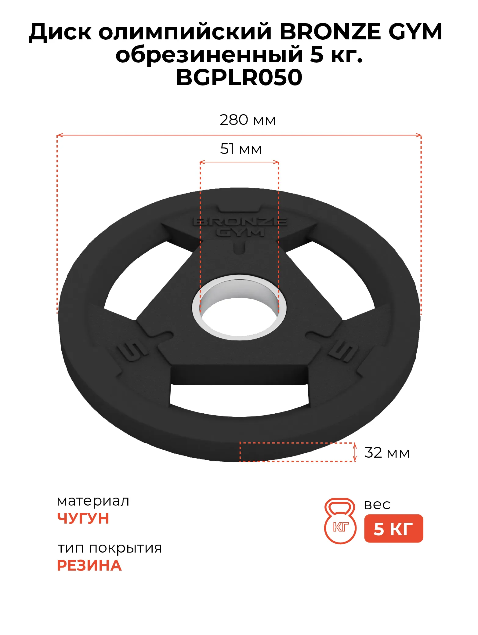 Диск олимпийский BRONZE GYM обрезиненный 5 кг