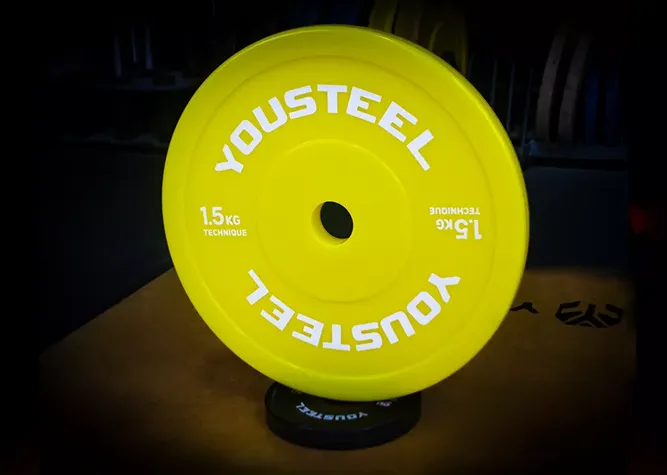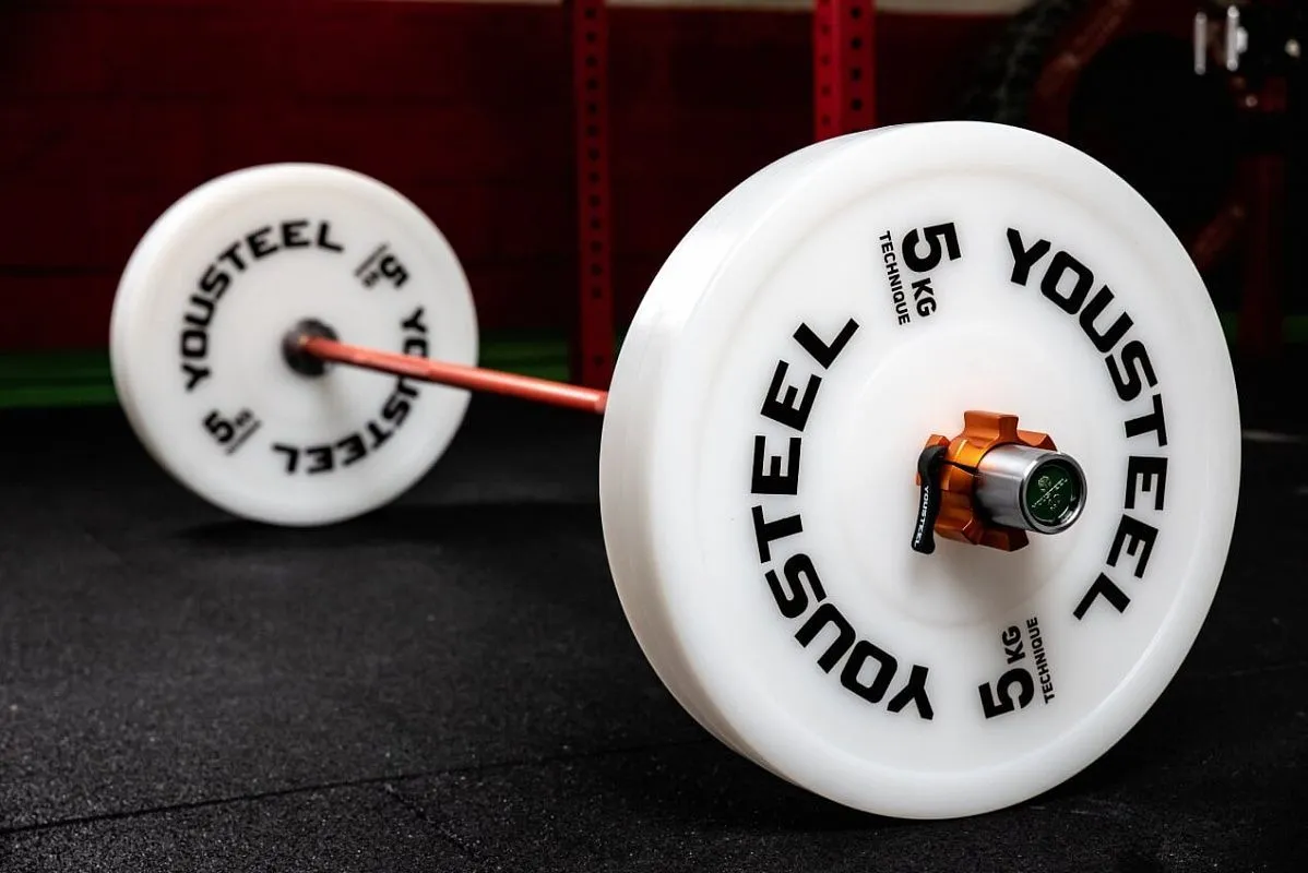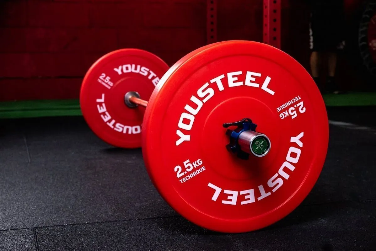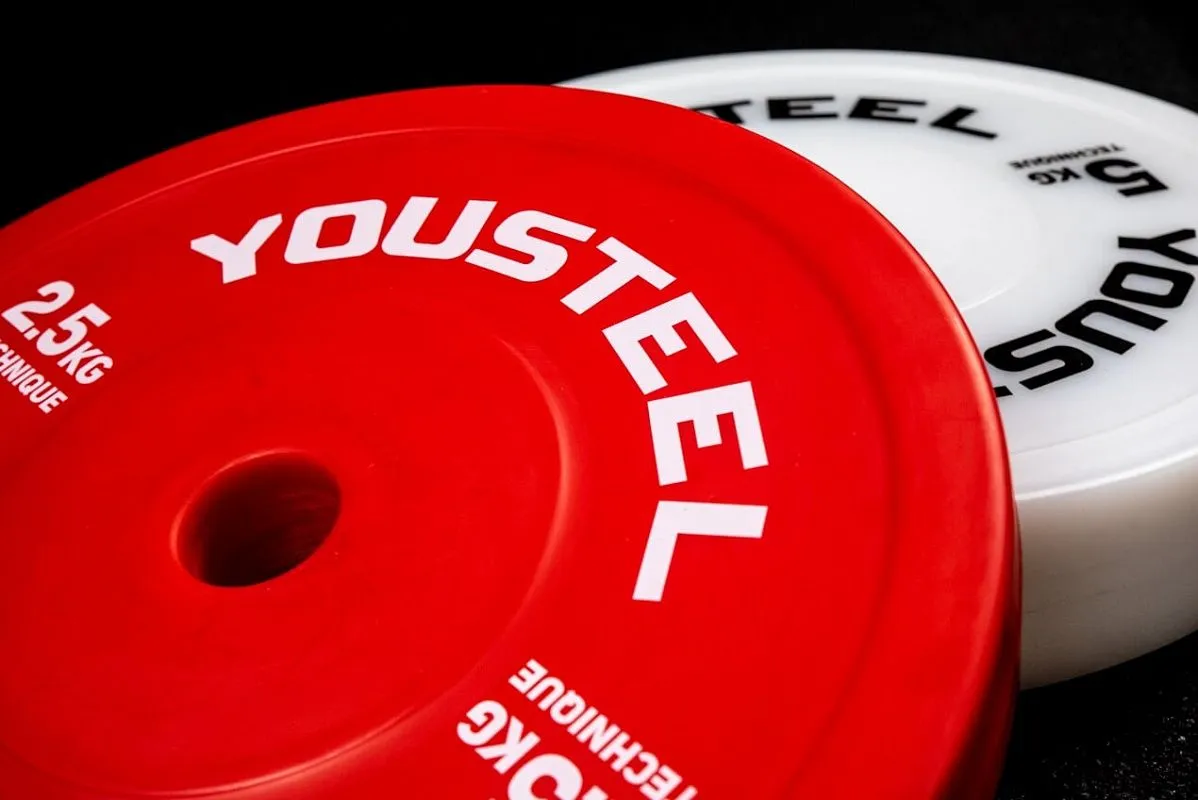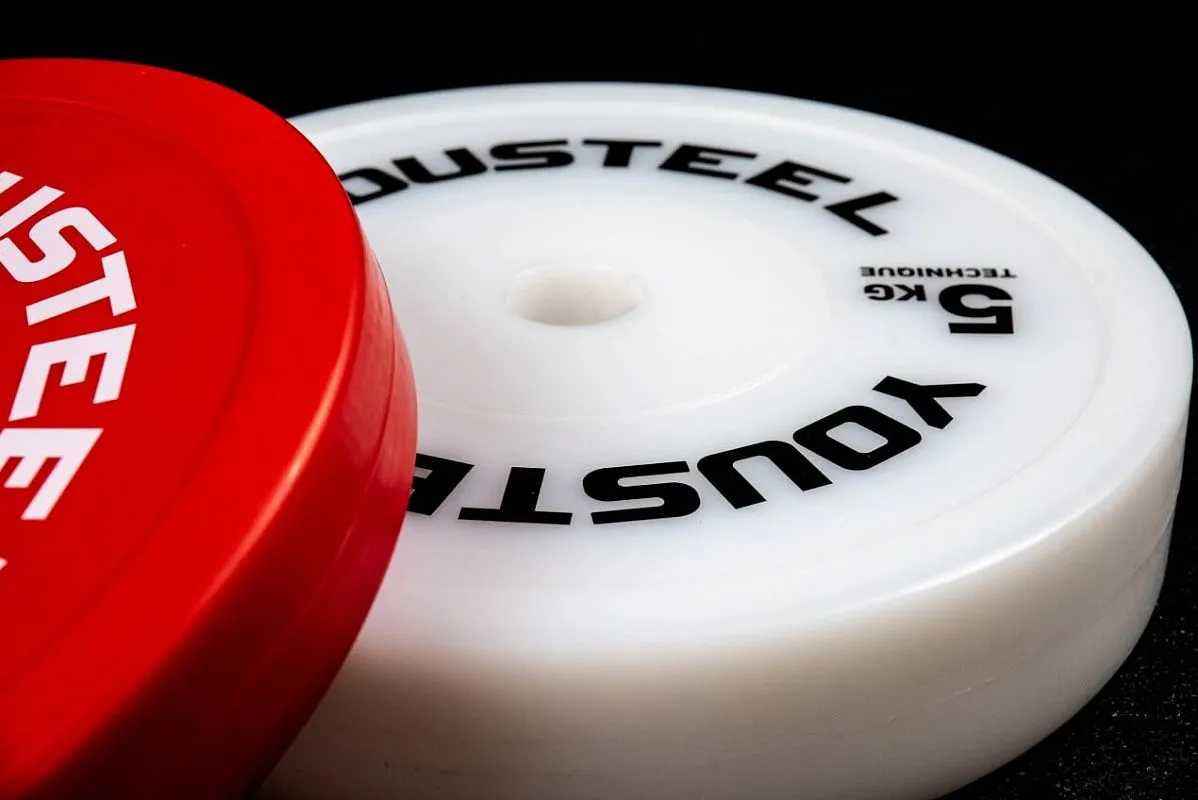 Изготовленные из полиэтилена высокой плотности, диски Yousteel имеют тот же внешний диаметр 450 мм, что и стандартные полноразмерные олимпийские бампированные диски. Это позволяет начинающим спортсменам, детям и юниорам учиться основам тяжелой атлетики, а реабилитирующимся восстанавливать правильную технику движений с надлежащей высоты над землей.
