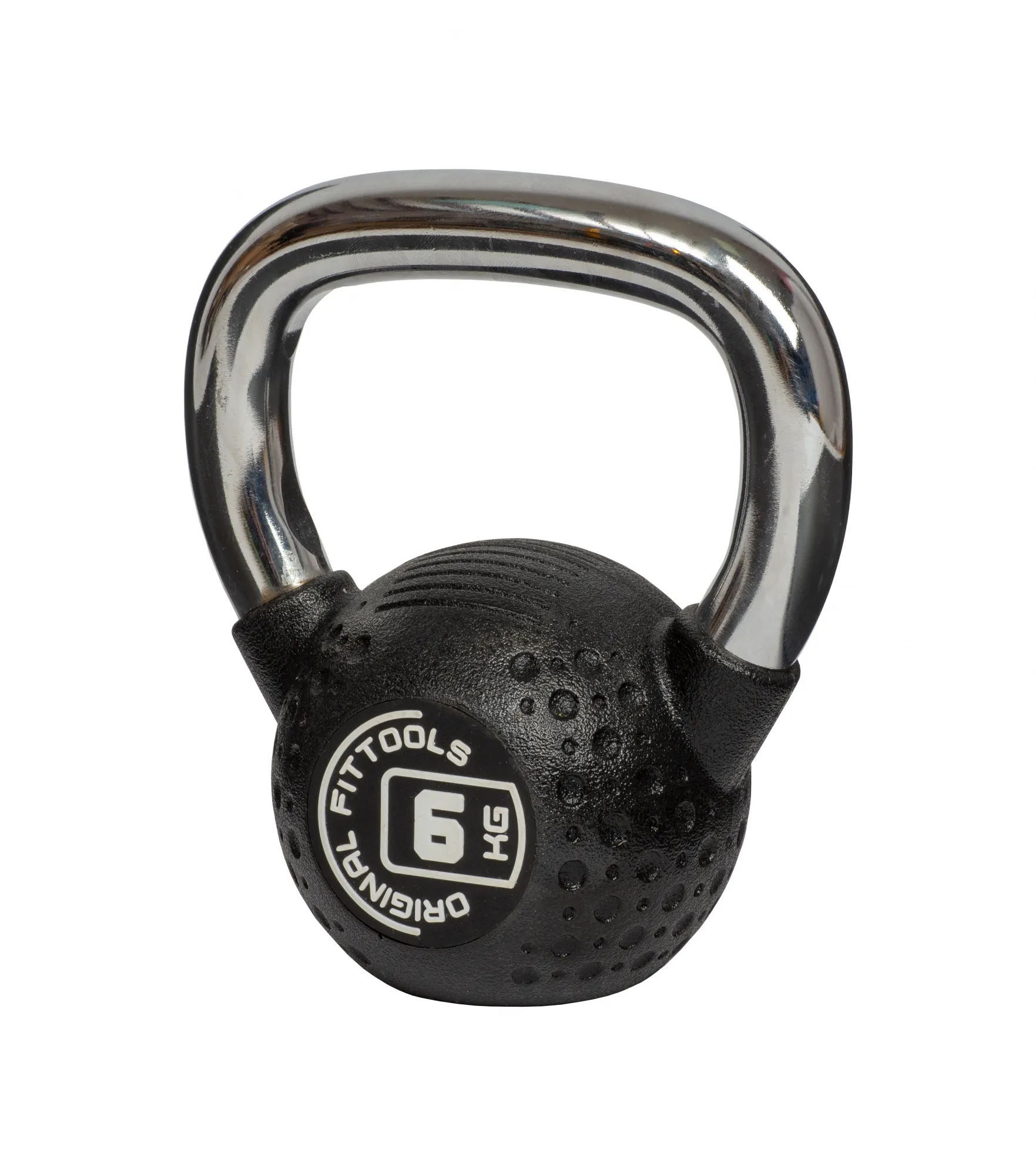 Премиальная гиря с хромированной ручкой и высококачественным полиуретановым покрытием.