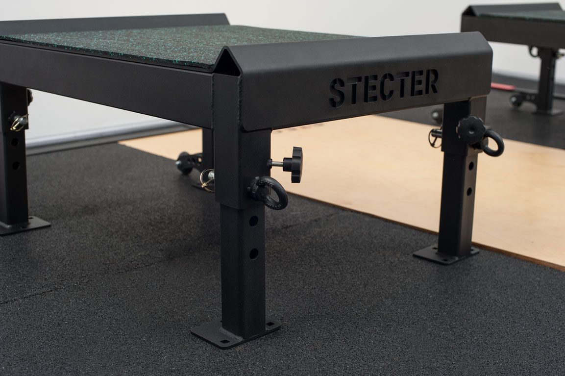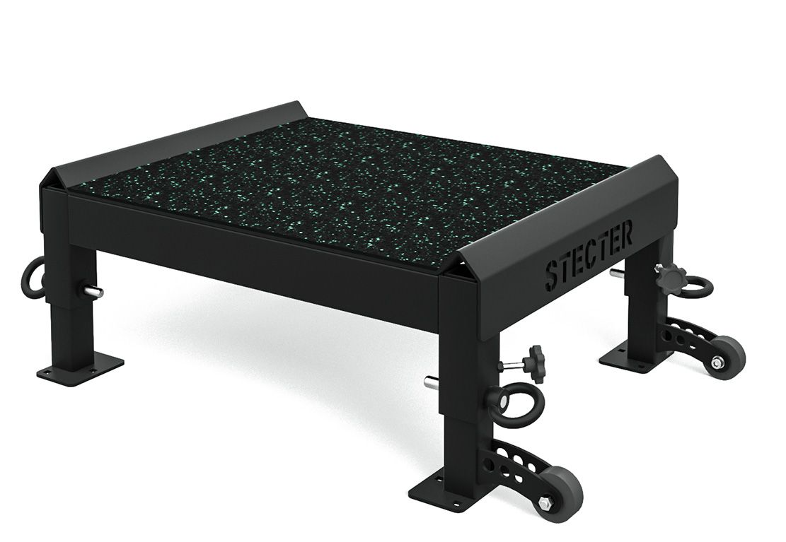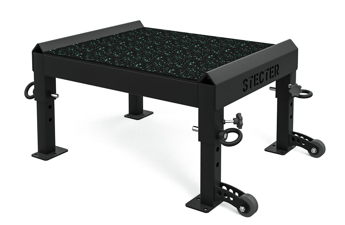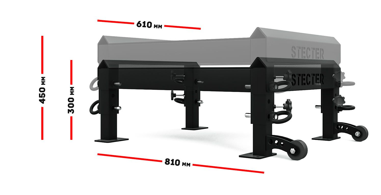 Компания STECTER совместно с профессионалами тяжелой атлетики разработала металлические плинты с регулировкой высоты. У нас получился очень надежный и качественный продукт, позволяющий подобрать комфортную высоту для спортсменов любого роста. Надежный стальной каркас изготовлен из труб сечением 80х60 мм с толщиной стенки 3 мм. Размер каркаса составляет 810х610 мм.