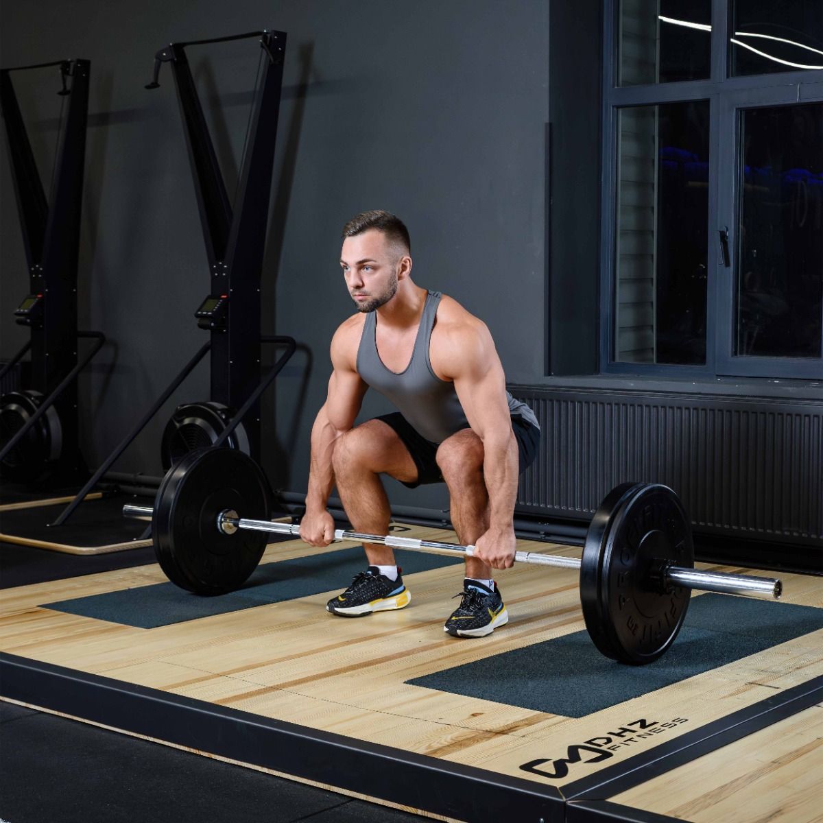 Резиновая поверхность служит для амортизации ударов от падения штанги.