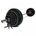 Диски олимпийского стандарта, начиная с веса 10 кг (новый стандарт), 15 кг (старый стандарт) или 25 кг (диски для пауэрлифтинга), имеют внешний диаметр 45 см. Могут быть как обрезиненными, так и без покрытия. Диски без покрытия используются в пауэрлифтинге. Для удобства, диски разных весов окрашиваются в разные цвета.