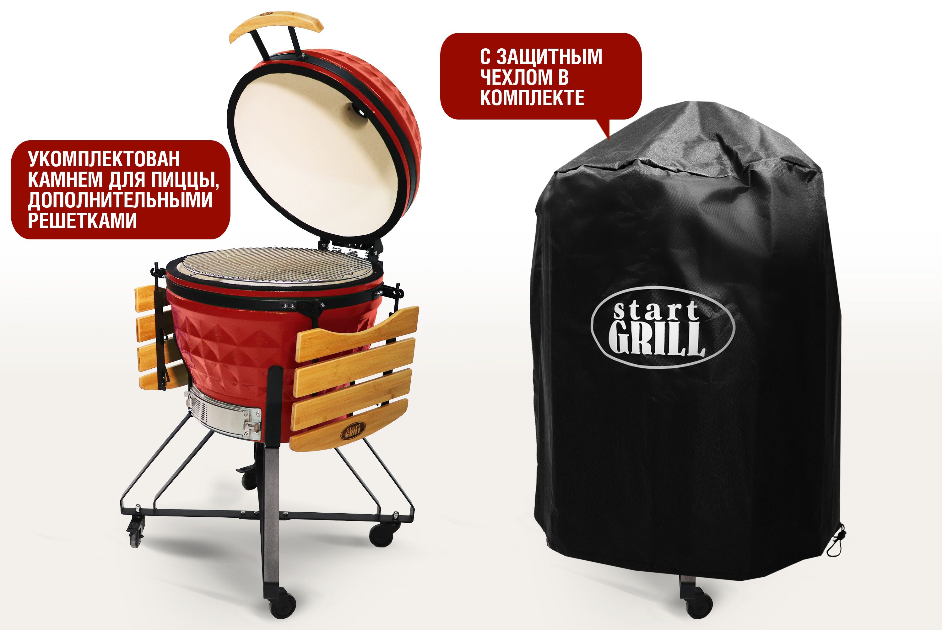 Start Grill PRO — новая премиальная серия керамических грилей Start Grill. Преимущества Start Grill PRO nbsp;nbsp;nbsp;nbsp;• Улучшенный состав керамической смеси. Помимо того, что он влияет на долговечность и износостойкость гриля, он гарантирует еще более продолжительное сохранение тепла во время готовки; nbsp;nbsp;nbsp;nbsp;• Усиленные пружины крышки гриля. Ваш повар будет служить вам много лет; nbsp;nbsp;nbsp;nbsp;• Усовершенствованная конструкция тележки. Теперь она максимально устойчивая; nbsp;nbsp;nbsp;nbsp;• Новый регулируемый верхний чугунный клапан со шкалой регулировки тяги; nbsp;nbsp;nbsp;nbsp;• Высокоточный термометр с 4 зонами приготовления; nbsp;nbsp;nbsp;nbsp;• Возможность регулировать боковые столики по радиусу. nbsp;nbsp;nbsp;nbsp;nbsp;nbsp;SG 24 PRO оснащен современной системой EASY CLEAN, которая представляет собой съемный нижний клапан подачи воздуха со встроенным в него лотком для сбора золы. Это позволяет легко и быстро очистить ваш гриль после готовки. Удобные крючки для аксессуаров на боковых столиках помогут оптимизировать пространство и сделать процесс приготовления блюд максимально комфортным.