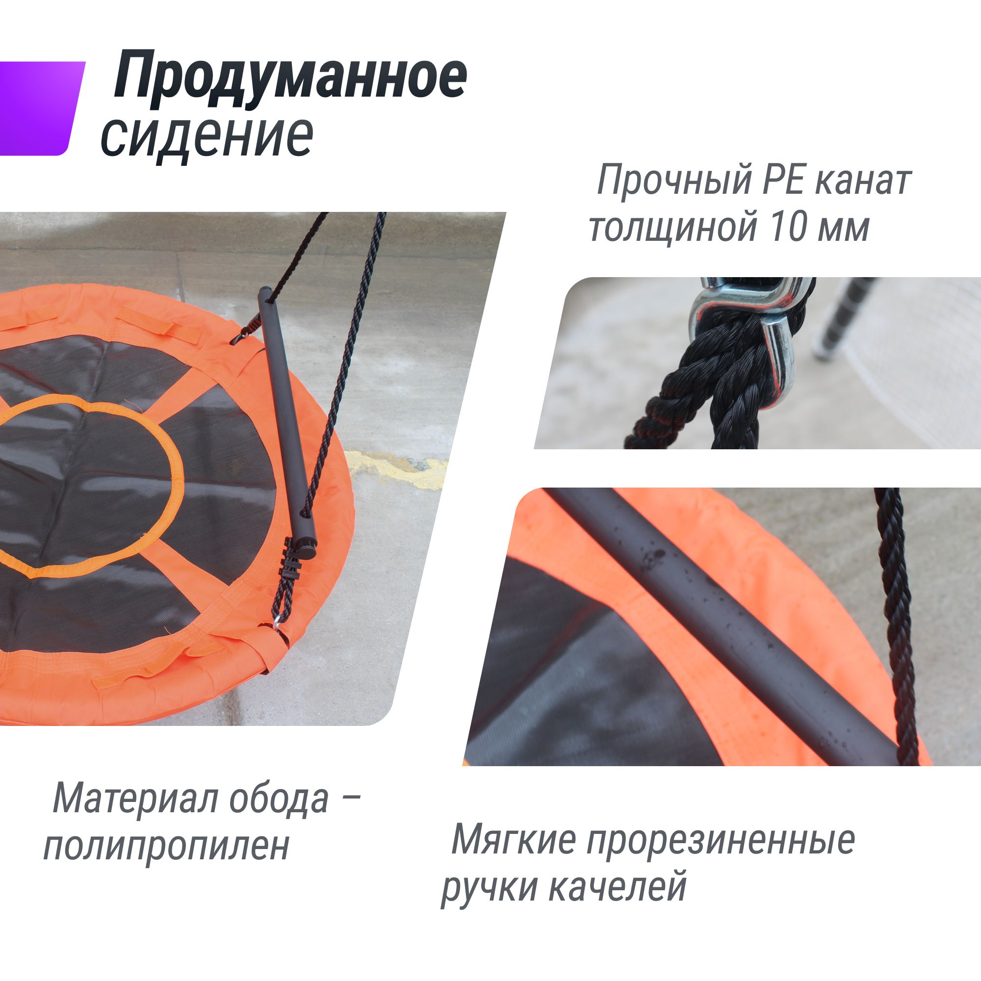 Детские качели гнездо UNIX Kids — это не просто игрушка, это целый мир удивительных приключений и безграничного веселья прямо у вас во дворе или саду! Качели представляют собой идеальное сочетание комфорта, безопасности и радости для детей и взрослых. Созданные с любовью и заботой, качели гнездо обеспечат детям комфорт и радость! Их удобная конструкция позволяет детям чувствовать себя как настоящими птицами, парящими в небесах, и при этом они могут наслаждаться свежим воздухом и окружающей природой. Игровой комплекс с качелями изготовлен из высококачественных материалов, обеспечивая прочность и надежность на протяжении многих лет использования. Каркас выполнен из металла с антикоррозийным покрытием. Максимальная нагрузка 100 кг. Мы уделяем особое внимание безопасности, поэтому каждая деталь тщательно проверена, чтобы вы могли быть уверены в благополучии ваших детей. Уличные качели диаметром 100 см создадут уникальное пространство для фантазий и игр. В них можно устроить уютное место для чтения книги, тихие размышления или же веселые игры вместе с друзьями. Материал, из которых изготовлены качели не боится влаги и солнца. Высоту можно регулировать от 143 до 187 см. Дополнительные футбольные ворота в конструкции игрового комплекса позволят играть в самую популярную игру прямо во дворе! Для надежного крепления к земле в комплекте поставляется колья. Главное преимущество комплекса с воротами в том, что для них не нужно выбирать место для стационарной установки, они всегда готовы к игре. Подарите себе и детям возможность окунуться в мир веселья и фантазий с уникальными качелями! Яркий и стильный дизайн станет украшением сада и будет вновь и вновь возвращать вас на удобные и уютные качели. Создайте уникальное место для игр и отдыха прямо у себя дома!