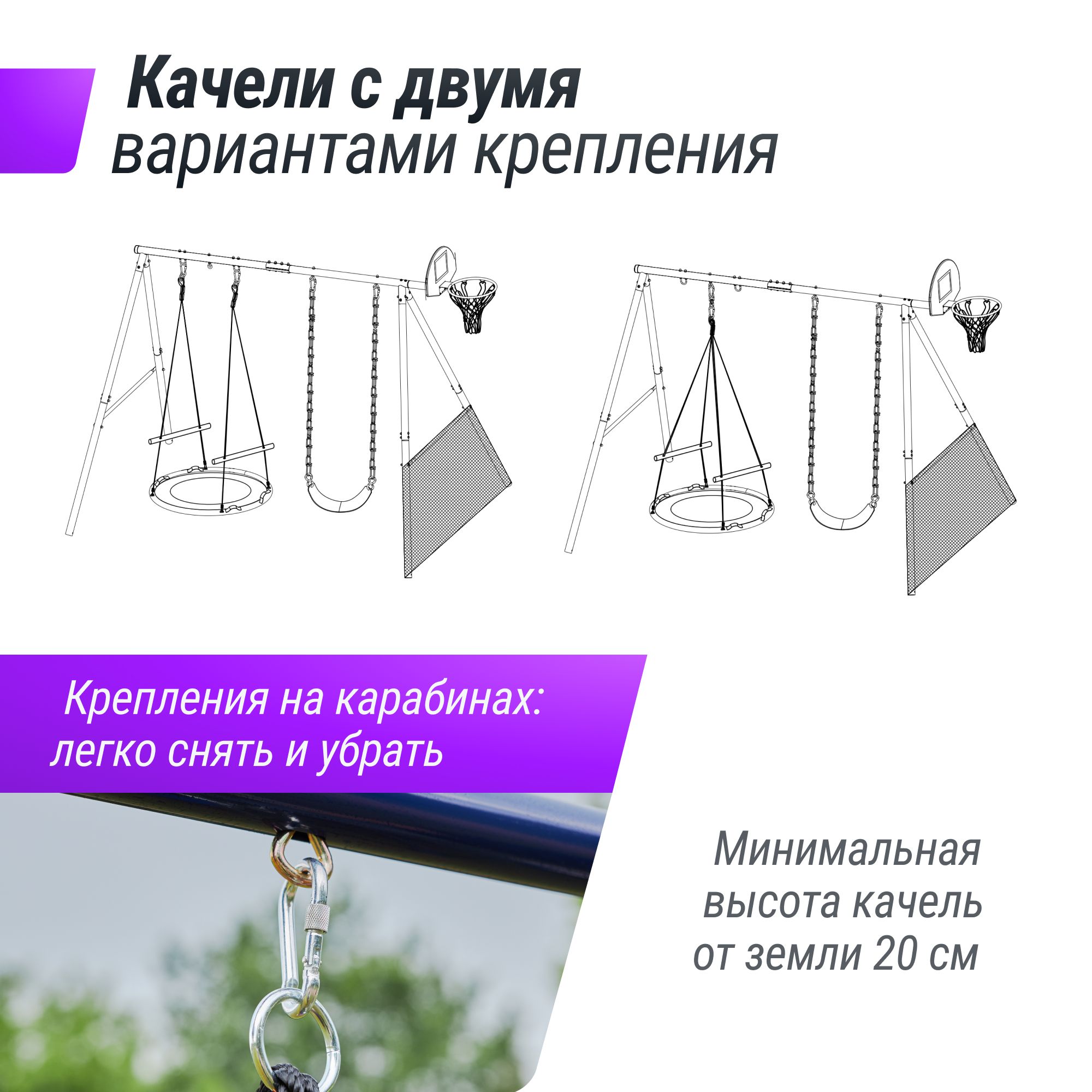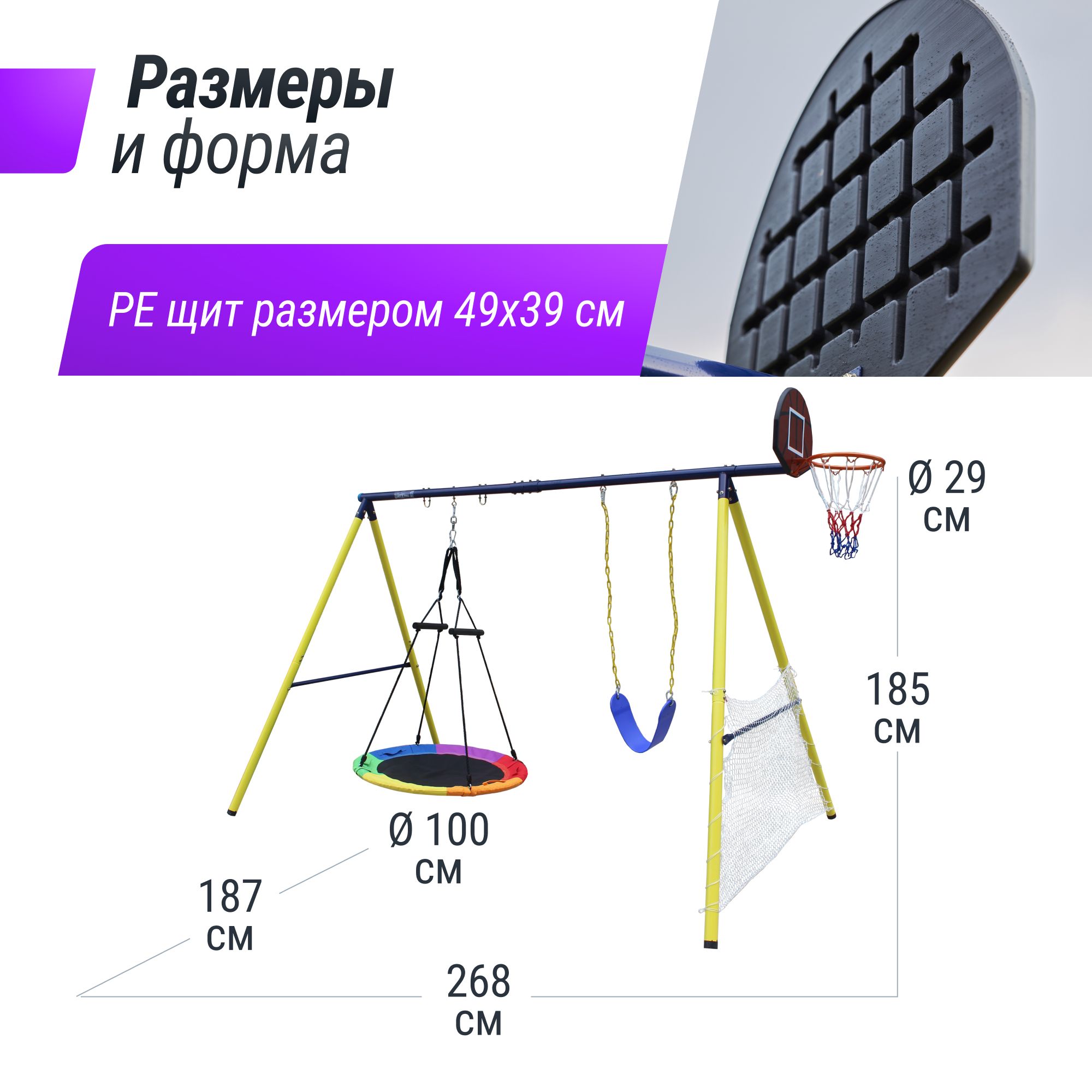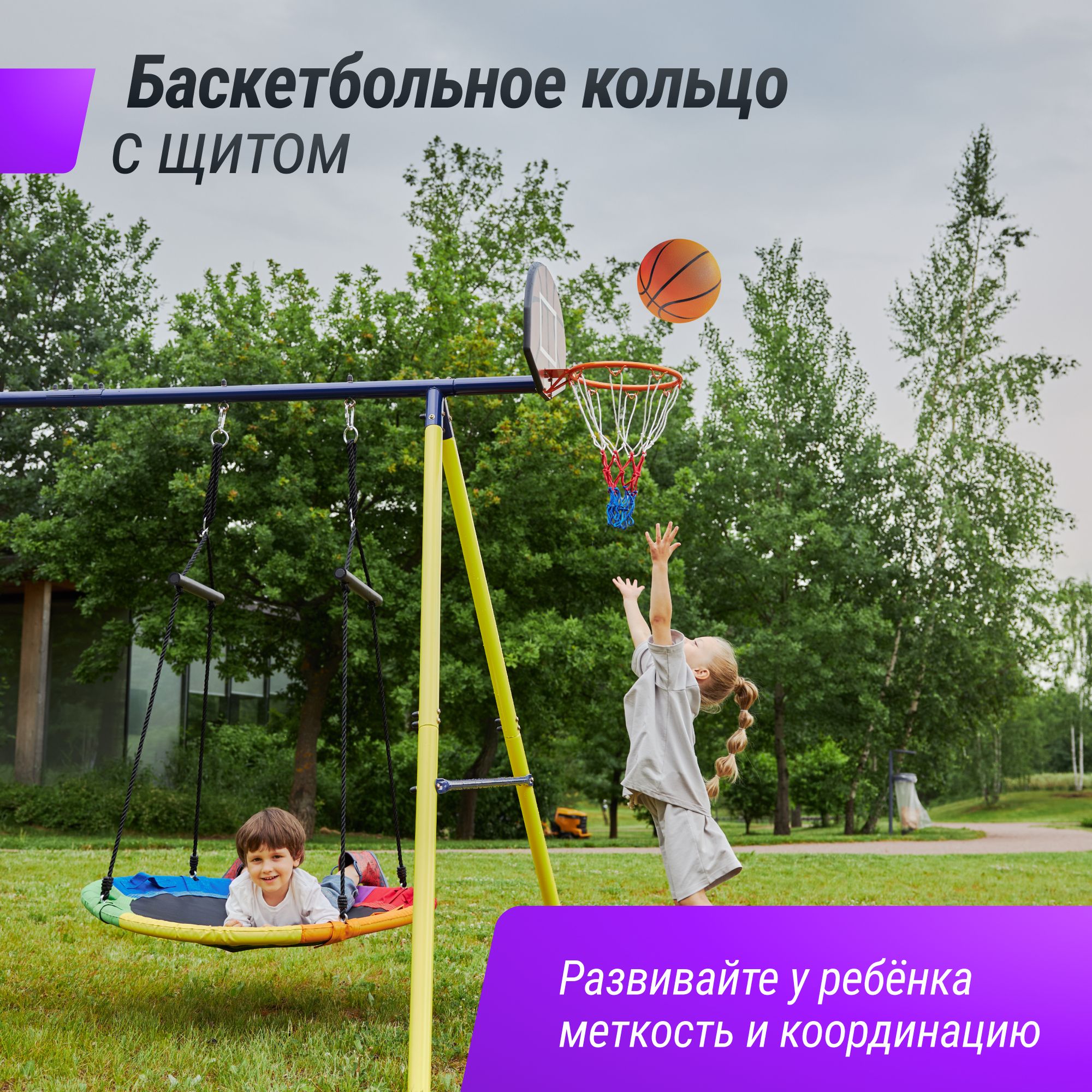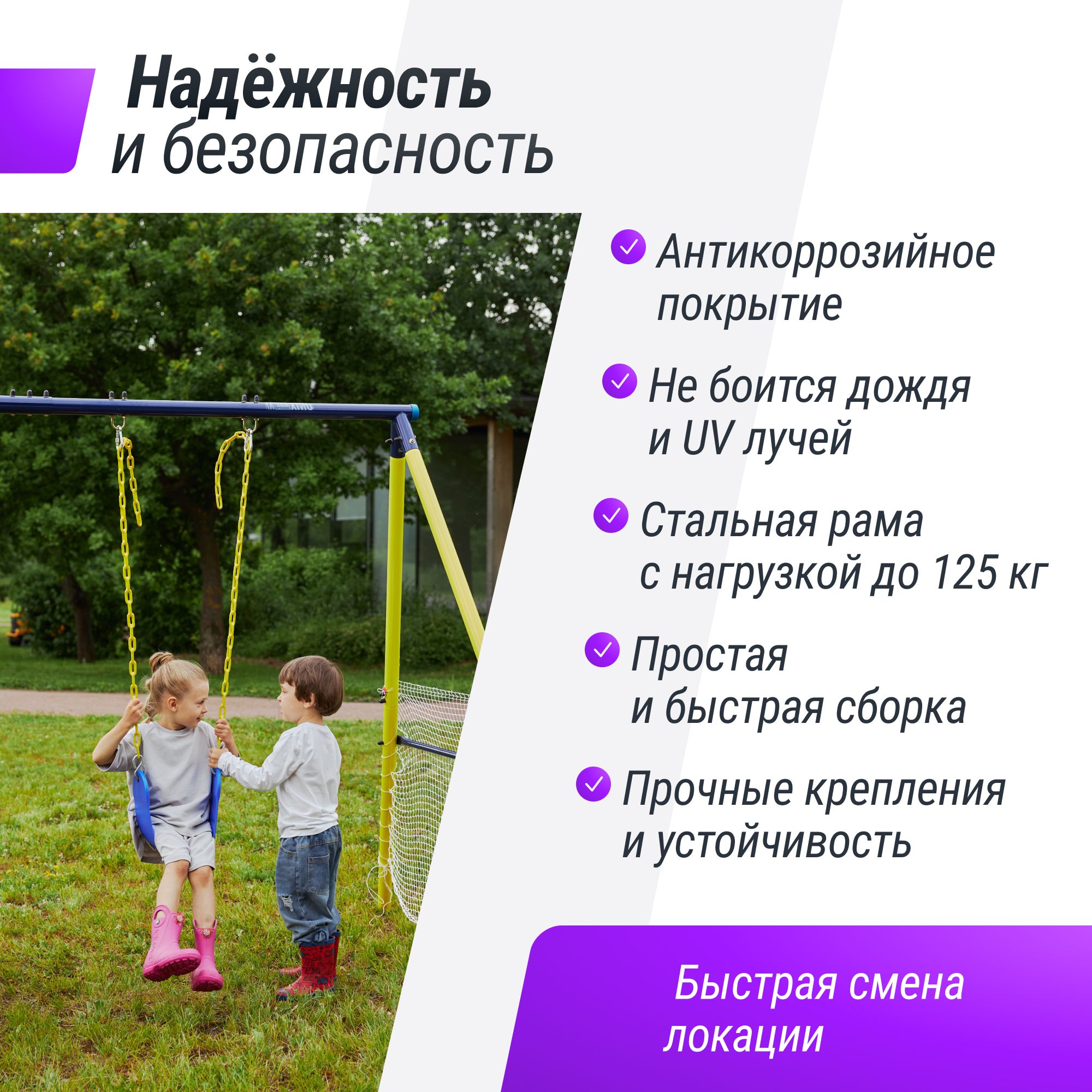 Игровой уличный комплекс с качелями, футбольными воротами и баскетбольным кольцом UNIX Kids станет сердцем вашего двора и любимым местом для развлечений! Детский комплекс сочетает в себе безопасность, качество и уникальный дизайн, чтобы обеспечить детям максимум удовольствия и активности на свежем воздухе. Каждая деталь комплекса продумана до мелочей, чтобы обеспечить безопасность и комфорт детям разного возраста. С обычными качелями, качелями гнездом, футбольными воротами и баскетбольным кольцом, дети смогут не только развиваться физически, но и проводить время с пользой, развивая координацию движений, силу и ловкость. Кроме того, детский игровой комплекс способствует социализации, помогая детям научиться работать в команде и развивать навыки общения. Создайте уникальное игровое пространство прямо у себя дома с уличным игровым комплексом с качелями и футбольными воротами и подарите своим детям яркие впечатления, веселые приключения и радость. Позвольте им погрузиться в мир фантазии и игры, где каждый день наполнен новыми открытиями и эмоциями! Спортивно игровой комплекс для улицы от UNIX Kids - это уголок счастья и радости для малышей и детей постарше!