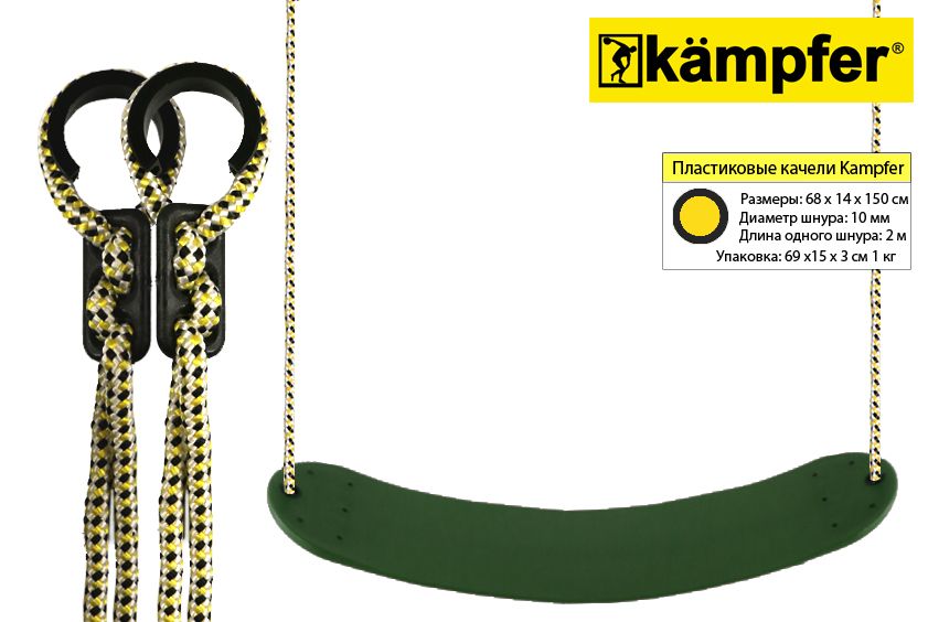 Качели Kampfer предназначены для использования как дома, так и на улице, поэтому прекрасно подойдут к домашним и уличным спортивным комплексам, а также к детским площадкам всех модификаций. Это облегченный гибкий вариант классических качелей наиболее безопасный для детей, а также удобный и компактный в переноске и хранении.