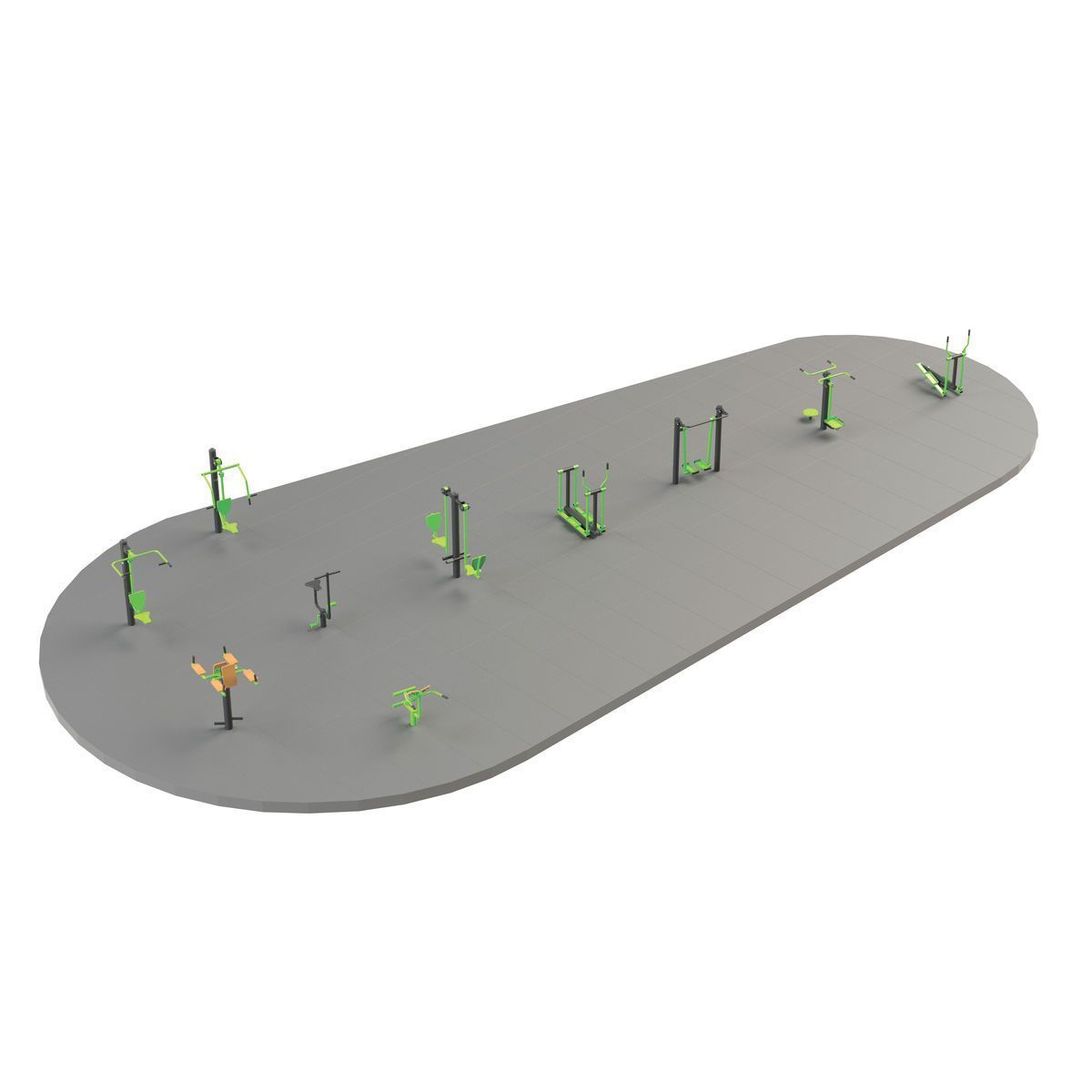 Фланцевое соединение опорного столба с закладной через четыре овальных отверстия размером 22×30 мм, расположенных на расстоянии 240 мм. Овальные отверстия под болтовое крепление М16 позволяют дополнительно регулировать положение тренажера.