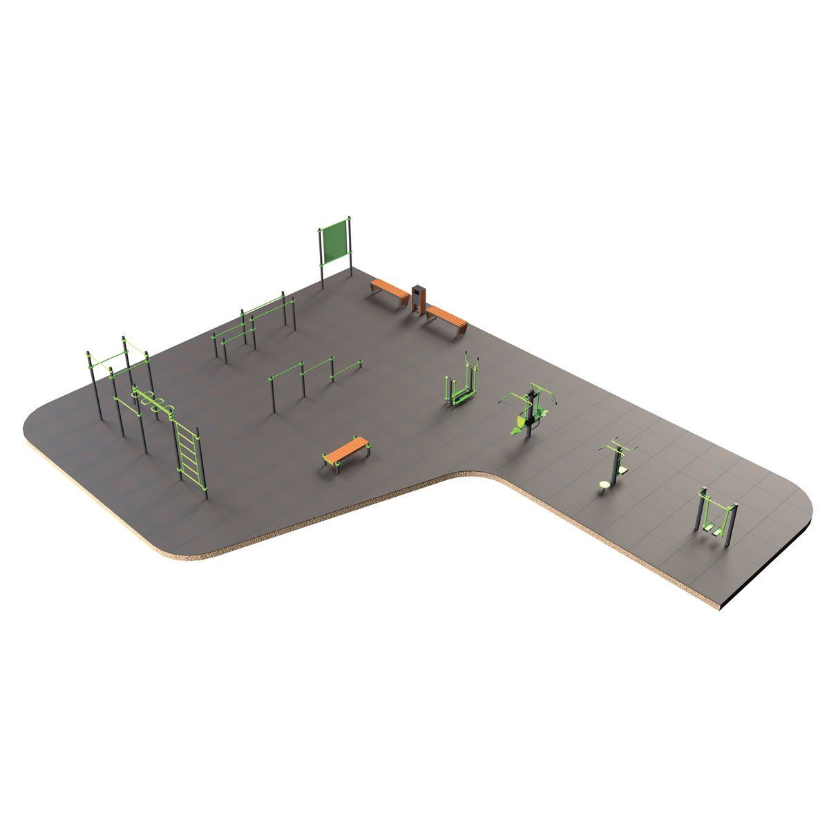 Фланцевое соединение опорного столба с закладной через четыре овальных отверстия размером 22×30 мм, расположенных на расстоянии 240 мм. Овальные отверстия под болтовое крепление М16 позволяют дополнительно регулировать положение тренажера.