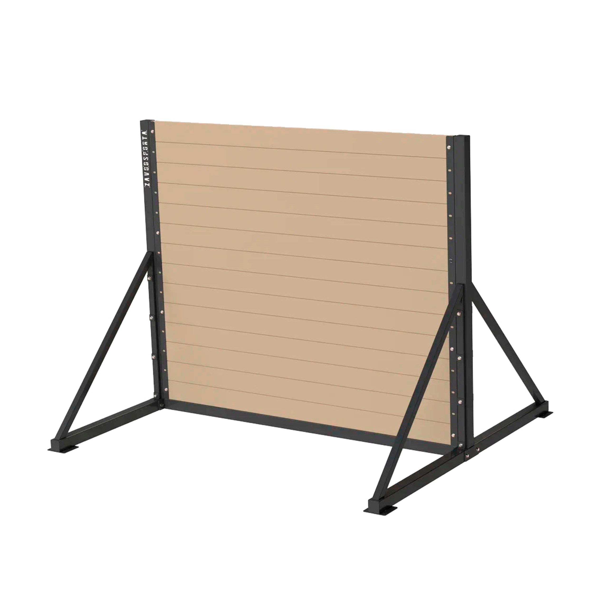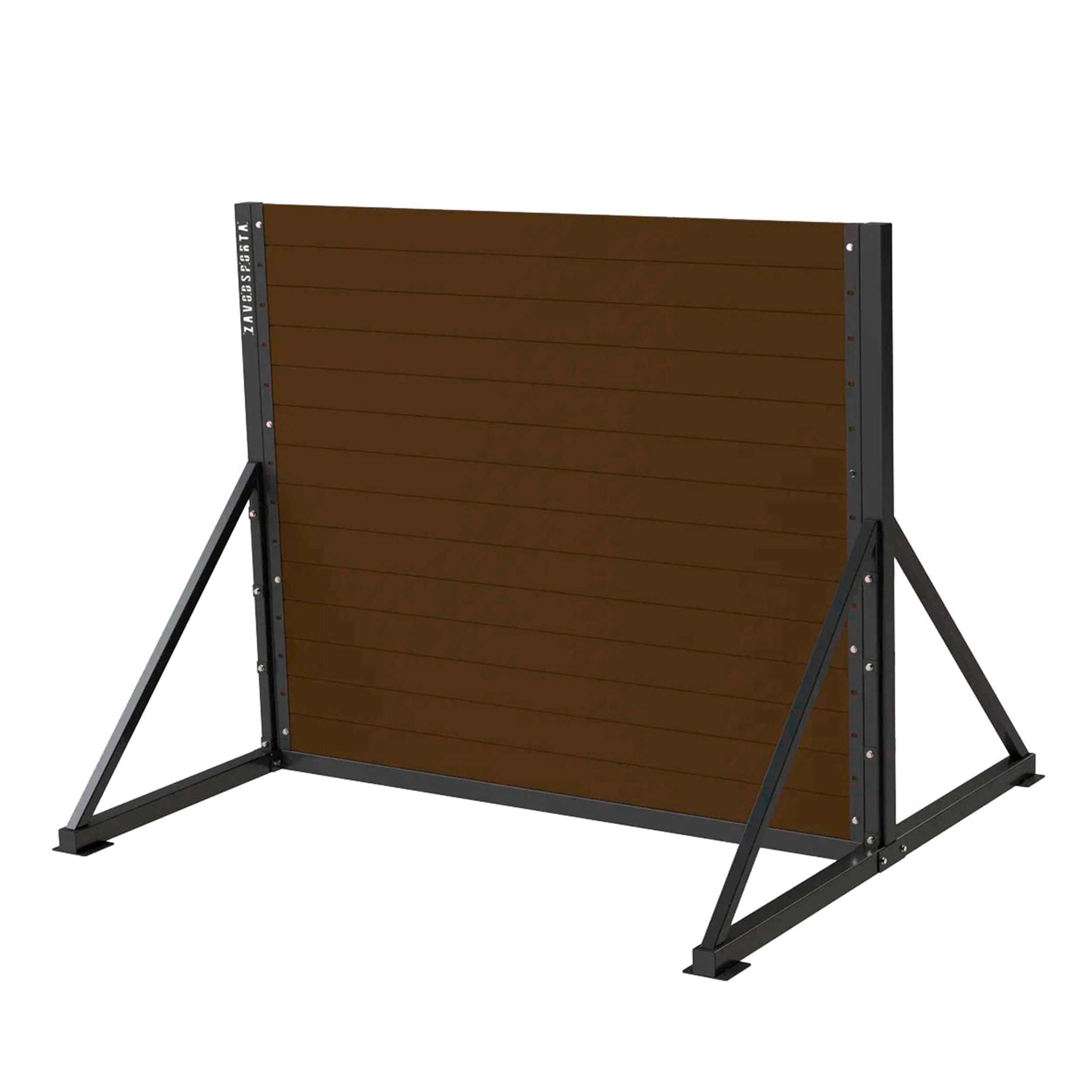 Стойки изготовлены из стальной профильной трубы 80×80×3 мм. Балка препятствия изготовлена из стальной трубы 80×80×3 мм. Стальная труба 80×80×3 усилена в местах крепежных соединений стальным листом толщ 5 мм. Крепление балки препятствия осуществляется болтовым соединением через стальные пластины толщиной 8 мм. Опоры препятствия изготовлены из стальной трубы 80×80×3 мм и стальной трубы 50×25×3 мм, с усиление в местах крепежных соединений из стального листа 5 мм. Уголок для фиксации доски препятствия изготовлен из стального листа толщ 3 мм. Забор выполнен из сосновой доски толщиной 40 мм. Сосновая доска покрыта лаком для уличных работ.