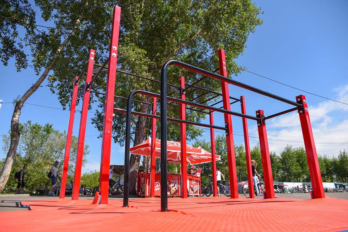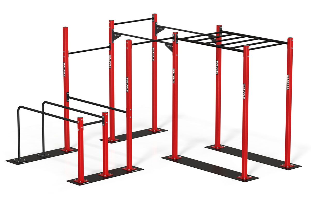 Спортивный комплекс, представляет собой сборную металлическую конструкцию состоящую из десяти опорных столбов трубы квадратного профиля, с приварными площадками для крепления к пластинам основания, двух перекладин длиной L=1816 мм., трех перекладин длиной L=1120 мм., в опорных столбах предусмотрены дополнительные отверстия для крепления перекладин на различной высоте, а так же включает в себя рукоход и сдвоенные брусья. Монтаж элементов спортивного комплекса осуществляется с помощью болтового соединения. К каждому опорному столбу по два болтовых соединения на один элемент комплекса. Разборная конструкция спортивного комплекса имеет высокую прочность и позволяет легко производить её монтаж и демонтаж. Все элементы покрыты атмосферостойкой порошковой краской, нанесенной методом электростатического напыления с последующим обжигом в печи.