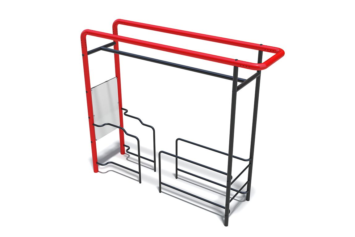 Компания STECTER предлагает уличный тренировочный комплекс с брусьями для отжиманий. Диаметр брусьев составляет 42 мм – это наиболее распространенный размер уличных поручней для отжиманий. В комплексе представлены несколько уровней от поверхности площадки, поэтому каждый найдет подходящую именно ему высоту.
