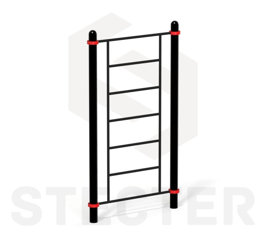 Шведская стенка, предназначенная для использования под открытым небом. Выполнена из металлических компонентов, устойчивых к интенсивным нагрузкам. Высота несущих опорных стоек составляет 2600 миллиметров. Расстояние между ними – 1200 мм. Сама шведская стенка представляет собой совершенно независимую готовую конструкцию. Ее высота – 2200 миллиметров. Шаг перекладин - 340 мм. Чтобы обеспечить длительное использование снаряда без каких-либо рисков, необходимо забетонировать опорные столбы на глубине от 500 миллиметров.
