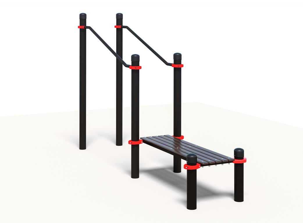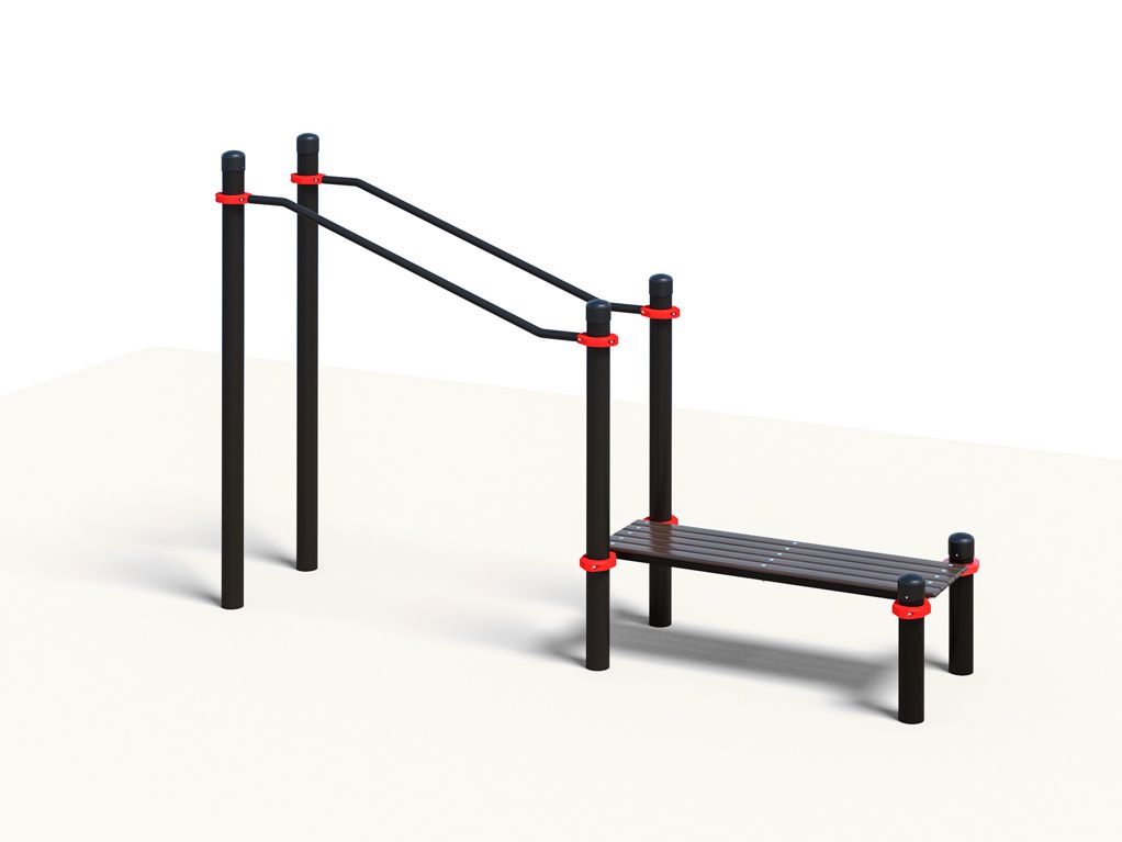 Купить комплекс для параворкаута "Брусья в подъем со скамьей" вы можете в нашем магазине