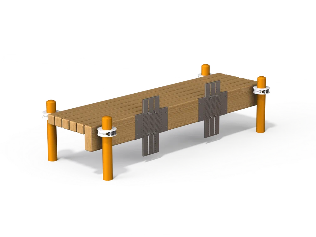 Скамья фиксирующейся к столбам на высоте от 300 мм от поверхности основания.