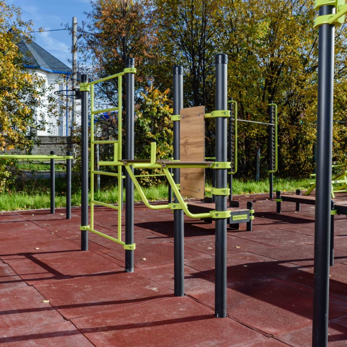 Перекладины шведской стенки выполнены из металлической трубы диаметром 34 мм с толщиной стенки 3,2 мм.