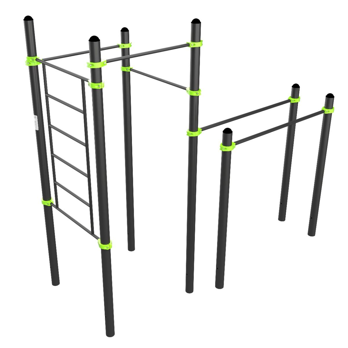 В состав комплекса входит семь опорных столбов: три высотой 3600 мм, один высотой 3300 мм, три высотой 2100 мм.