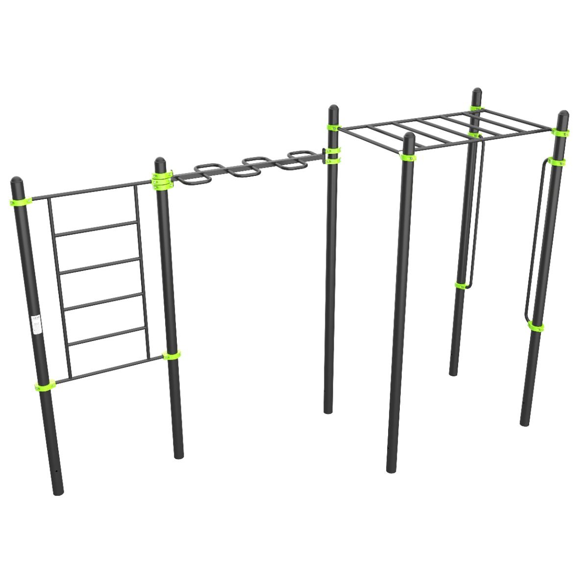 Перекладины шведской стенки, классического горизонтального рукохода, вертикальные перекладины выполнены из металлической трубы диаметром 34 мм с толщиной стенки 3,2 мм.