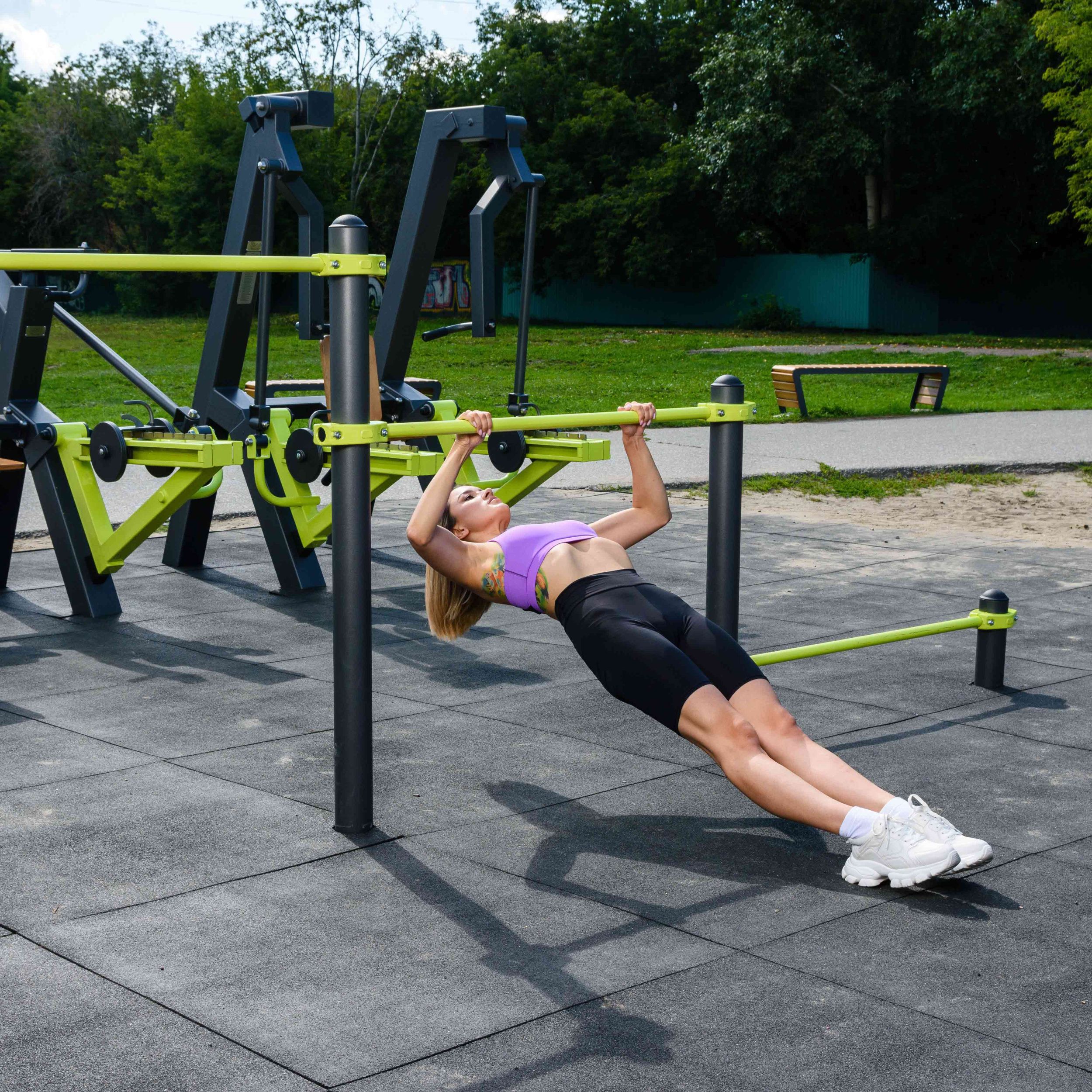 Перекладины выполнены из металлической трубы диаметром 34 мм с толщиной стенки 3,2 мм.