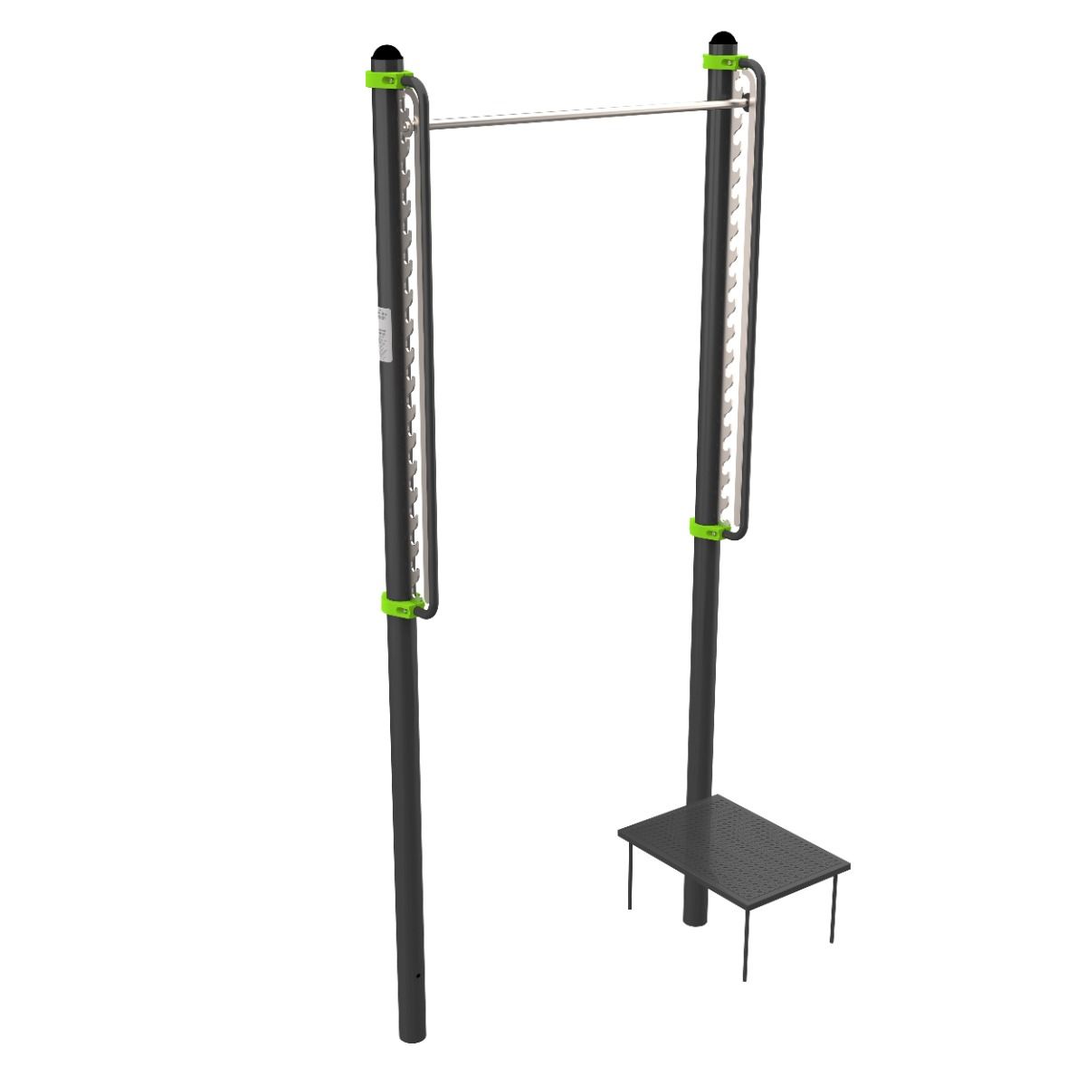В состав комплекса входит два опорных столба высотой 3750 мм с гребенкой для регулируемой перекладины.