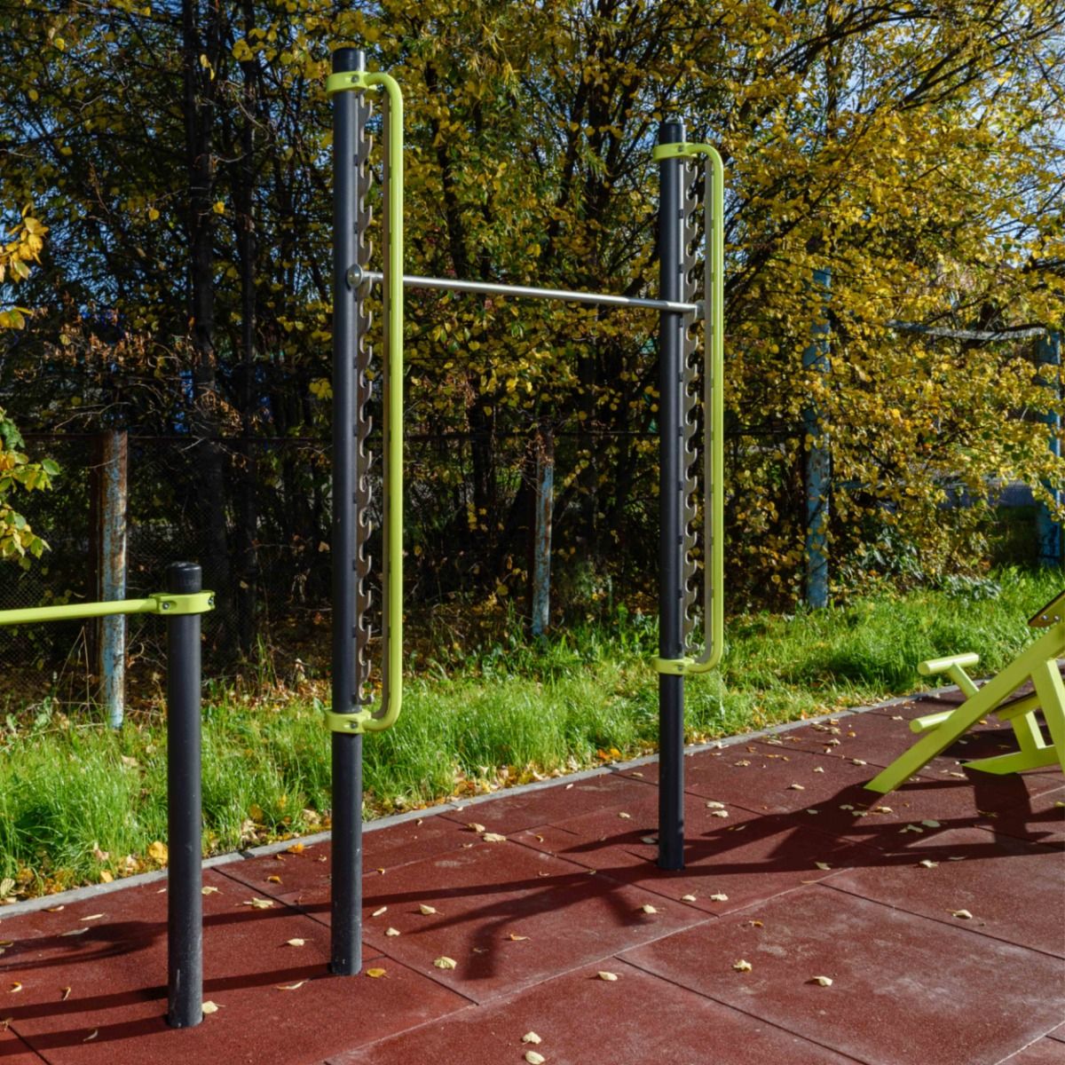 Высота турника-перекладины регулируется от 900 мм до 2600 мм (от уровня площадки) с шагом 100 мм.