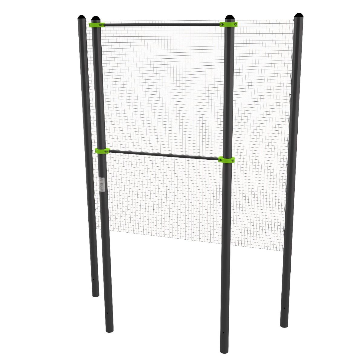 В состав комплекса входят четыре опорных столба: два высотой 4150 мм и два (с крепежом для сетки) высотой 4150 мм.