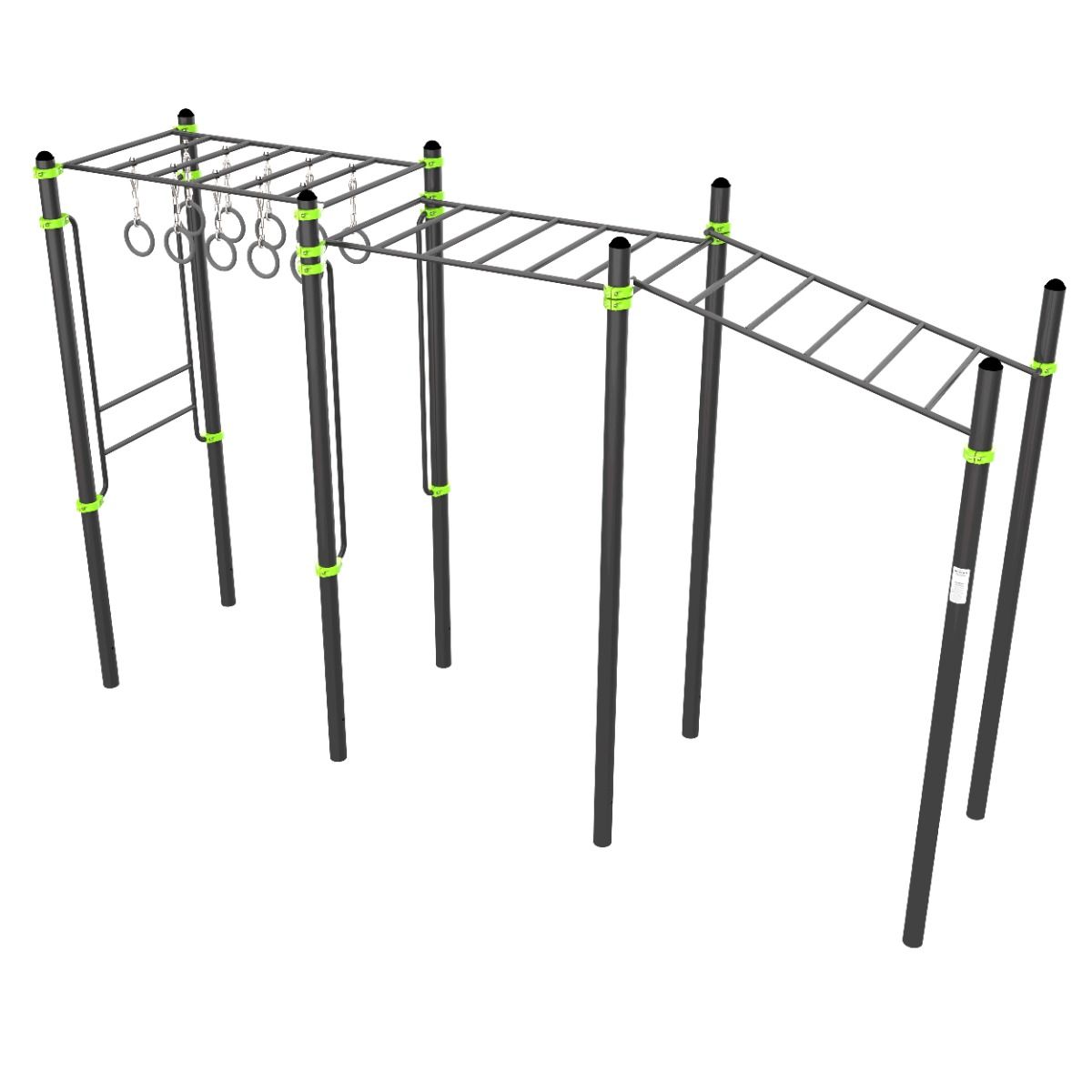 Рукоходы классический и в подъём, рукоход с кольцами, перекладины вертикальные и низкая шведская стенка выполнены из металлической трубы диаметром 34 мм с толщиной стенки 3,2 мм.