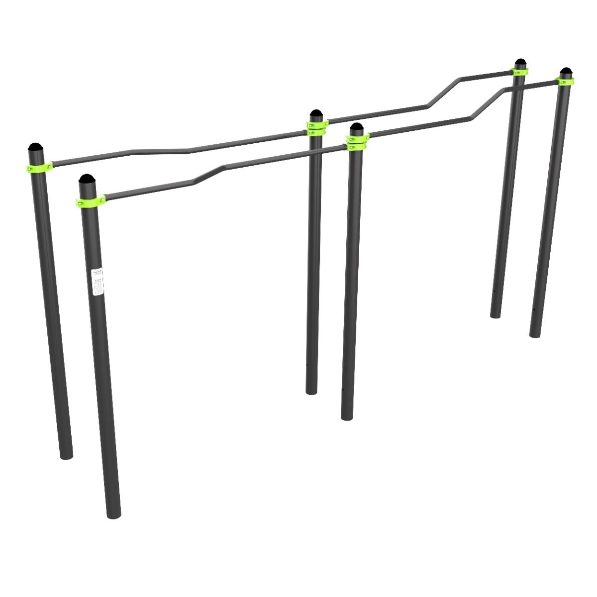 Перекладины брусьев выполнены из металлической трубы диаметром 42 мм с толщиной стенки 3,2 мм