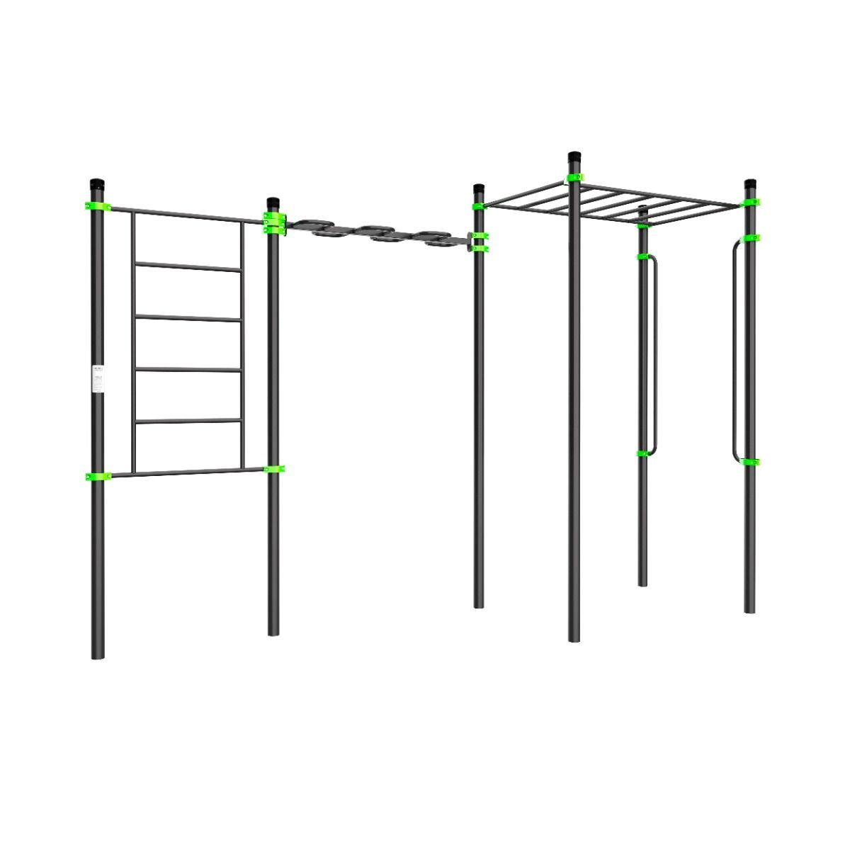 Перекладины шведской стенки, классического горизонтального рукохода, рукохода-змеевика, вертикальные перекладины выполнены из металлической трубы диаметром 34 мм с толщиной стенки 3,2 мм.