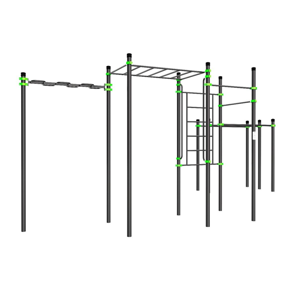В состав комплекса входит 12 опорных столбов: шесть высотой 3600 мм, пять высотой 2100 мм и один высотой 3300 мм.