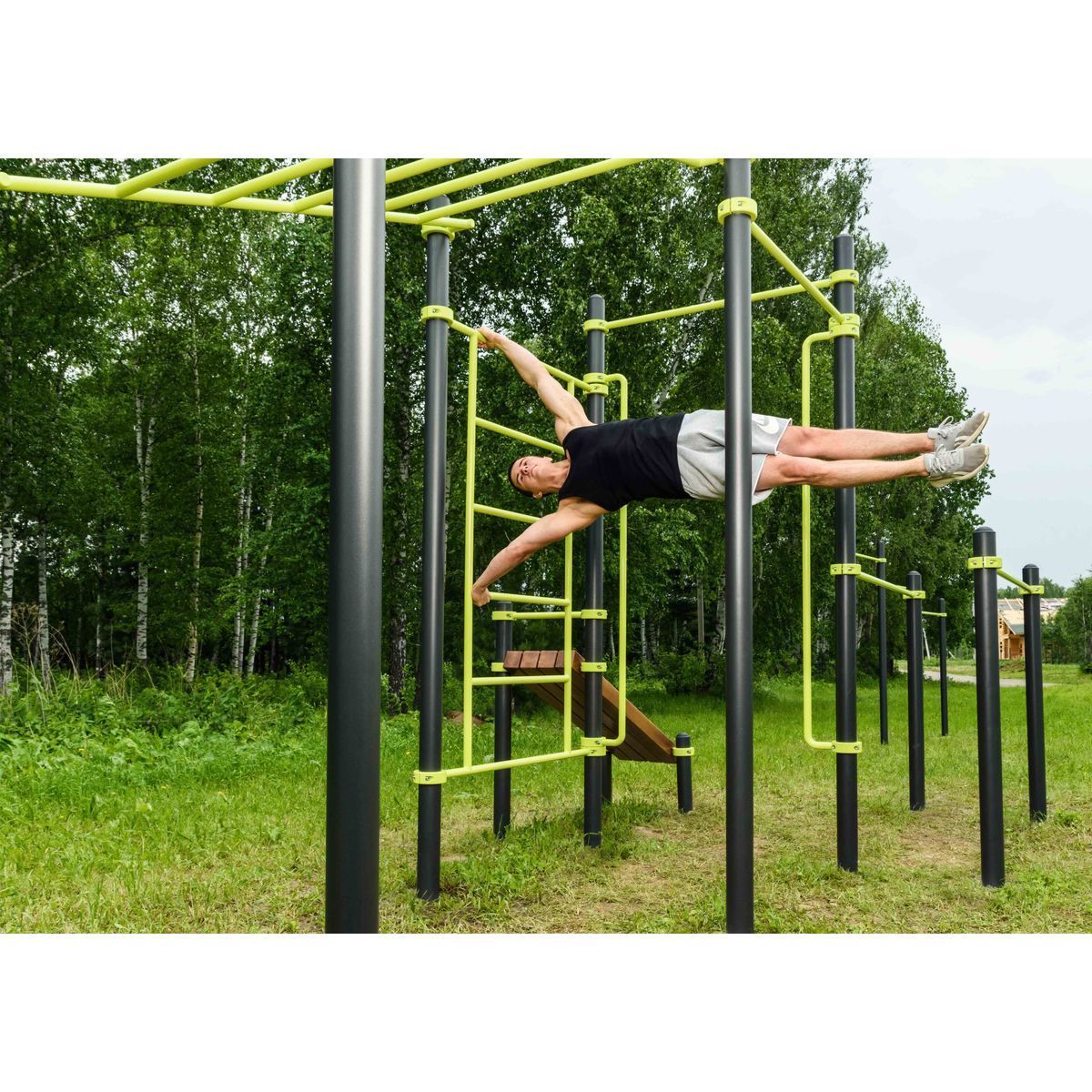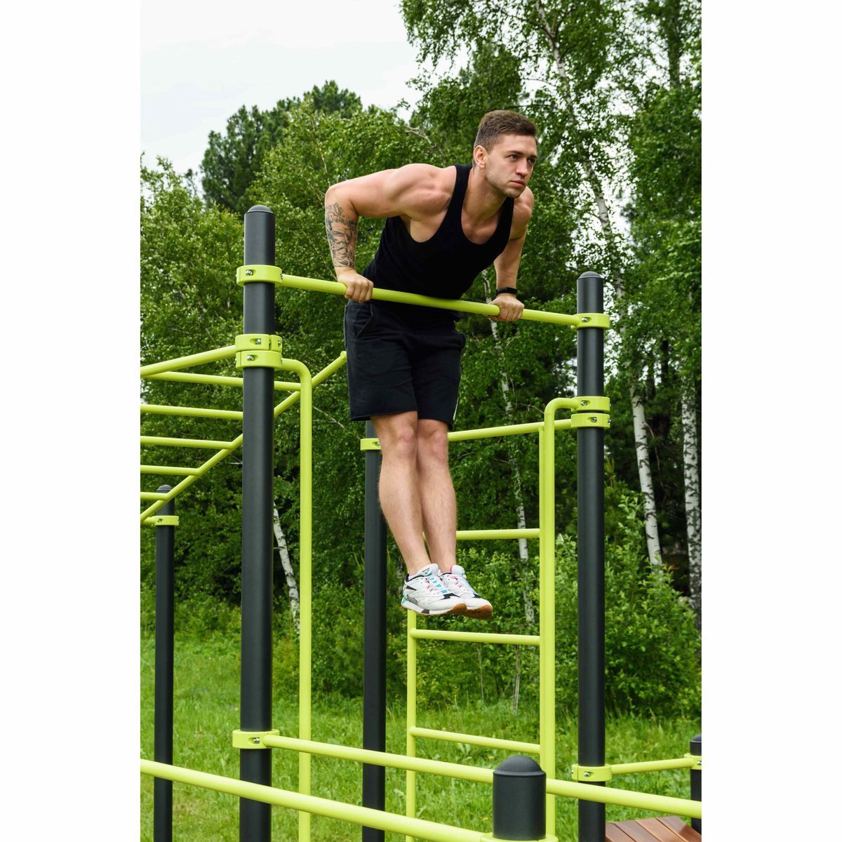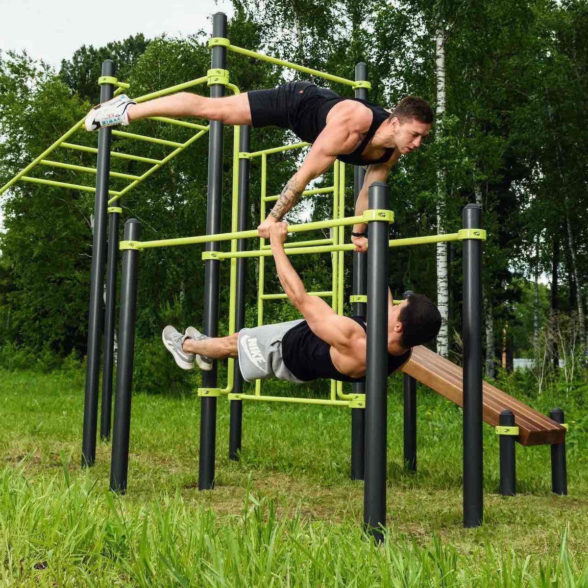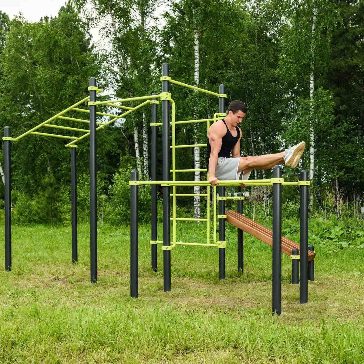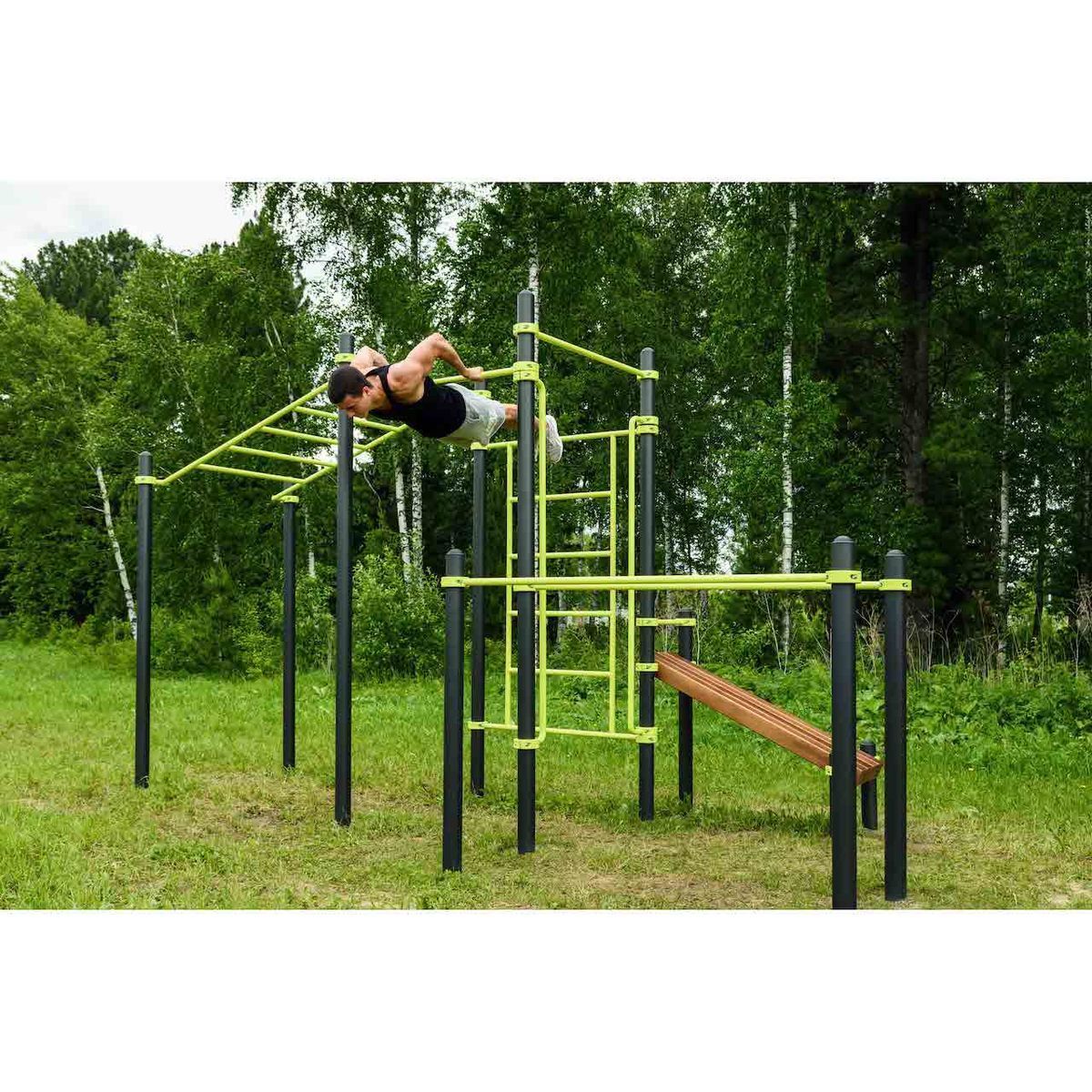 Перекладины брусьев выполнены из металлической трубы диаметром 42 мм с толщиной стенки 3,2 мм.