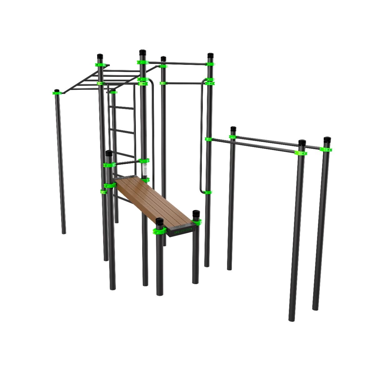 В состав комплекса входит 12 опорных столбов: четыре высотой 3600 мм, два высотой 3000 мм, три высотой 2600 мм, один высотой 2100 мм, два высотой 1000 мм.